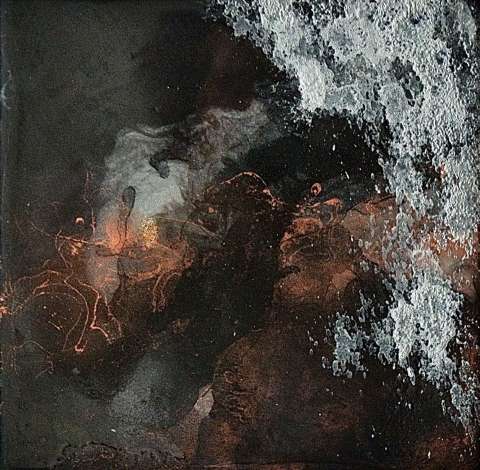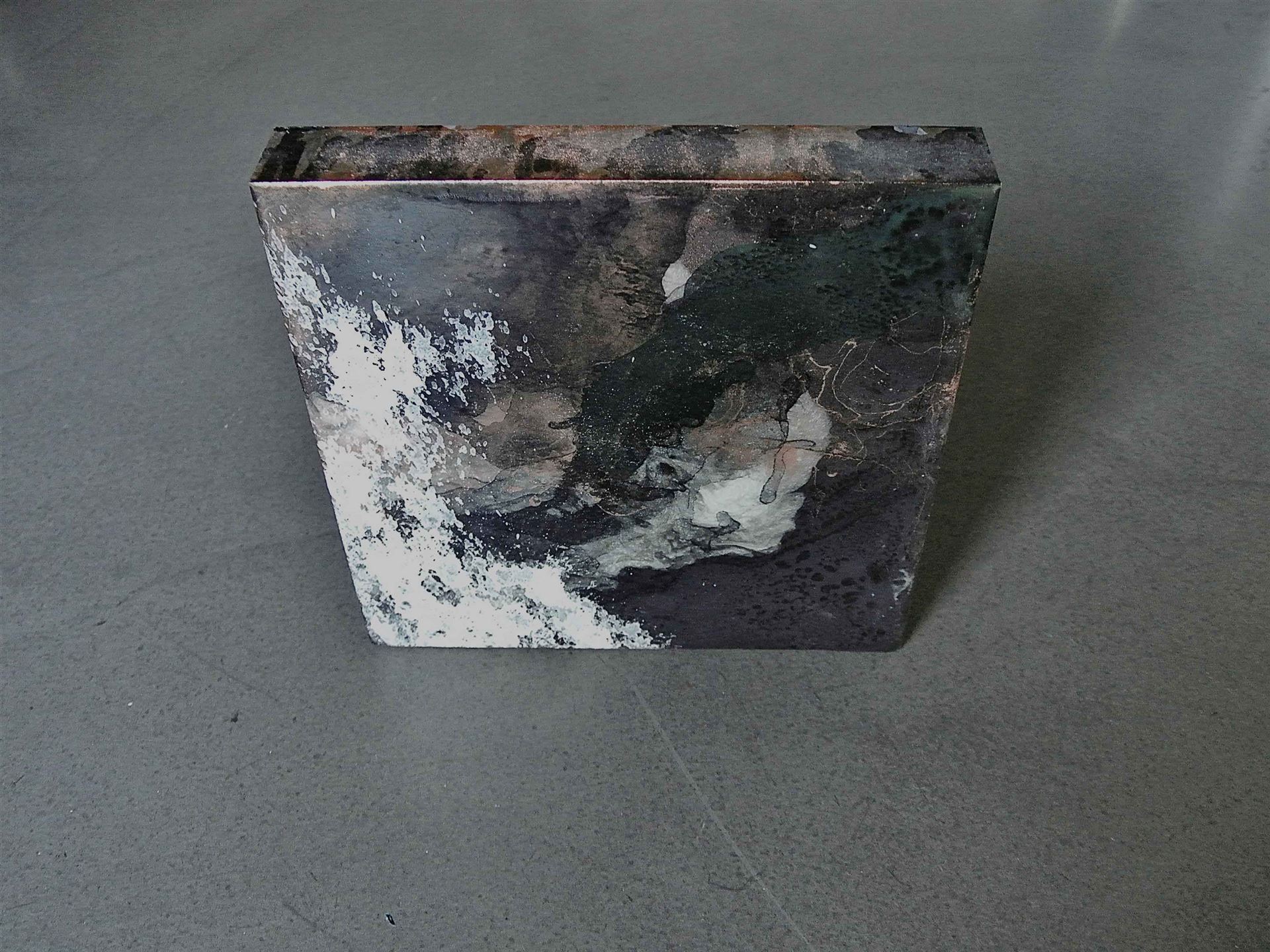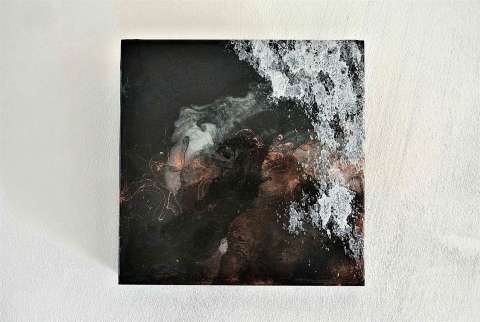 Das Kunstwerk "O.T.8" wurde mit Resin , Alkoholtinte und Mixed Media auf Holzmalgrund gemalt. Das Außenmaß dieses Unikates beträgt 20 cm x 20 cm x 3 cm.