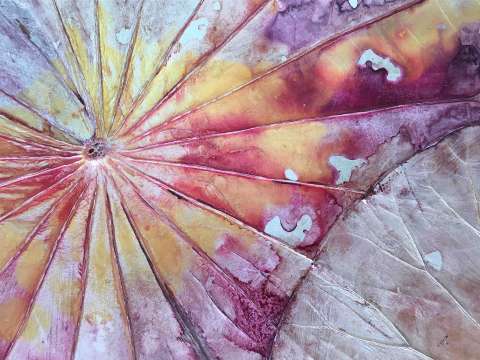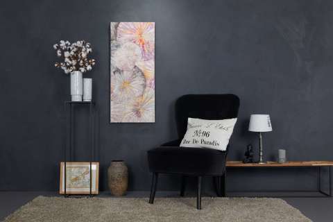 Das Kunstwerk "Zart" wurde mit der speziellen thailändischen Lotusmalerei erstellt. Das Kunstwerk ist mit Acrylfarbe, Antiktusche und Mixed Media auf einem Lotusblatt auf Leinwand gemalt. Die Ränder der Leinwand sind schwarz gehalten. Das Kunstwerk kann sowohl hochkant als auch quer gehängt werden. Das Außenmaß dieses Unikates beträgt 90 cm x 40 cm x 3 cm.
