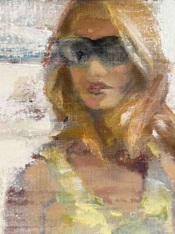 Das Kunstwerk "Spaziergang 1" wurde in Öl auf Leinwand gemalt. Das Gemälde hat ein Außenmaß von 50 cm x 70 cm x 3,5 cm.