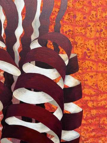 Das Kunstwerk "alltäglich" wurde in Acryl auf Leinwand gemalt. Das Außenmaß des Kunstwerkes beträgt 60 cm x 60 cm x 4 cm.