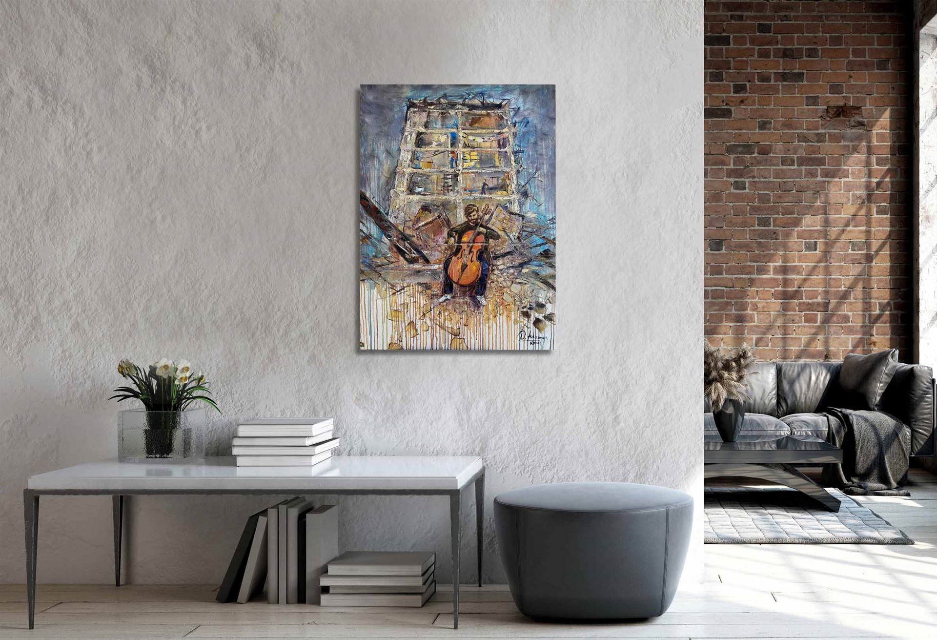 Das Kunstwerk "Music of our souls" wurde in Öl auf Leinwand gemalt. Das Außenmaß dieses Unikates beträgt 80 cm x 60 cm x 1,7 cm.