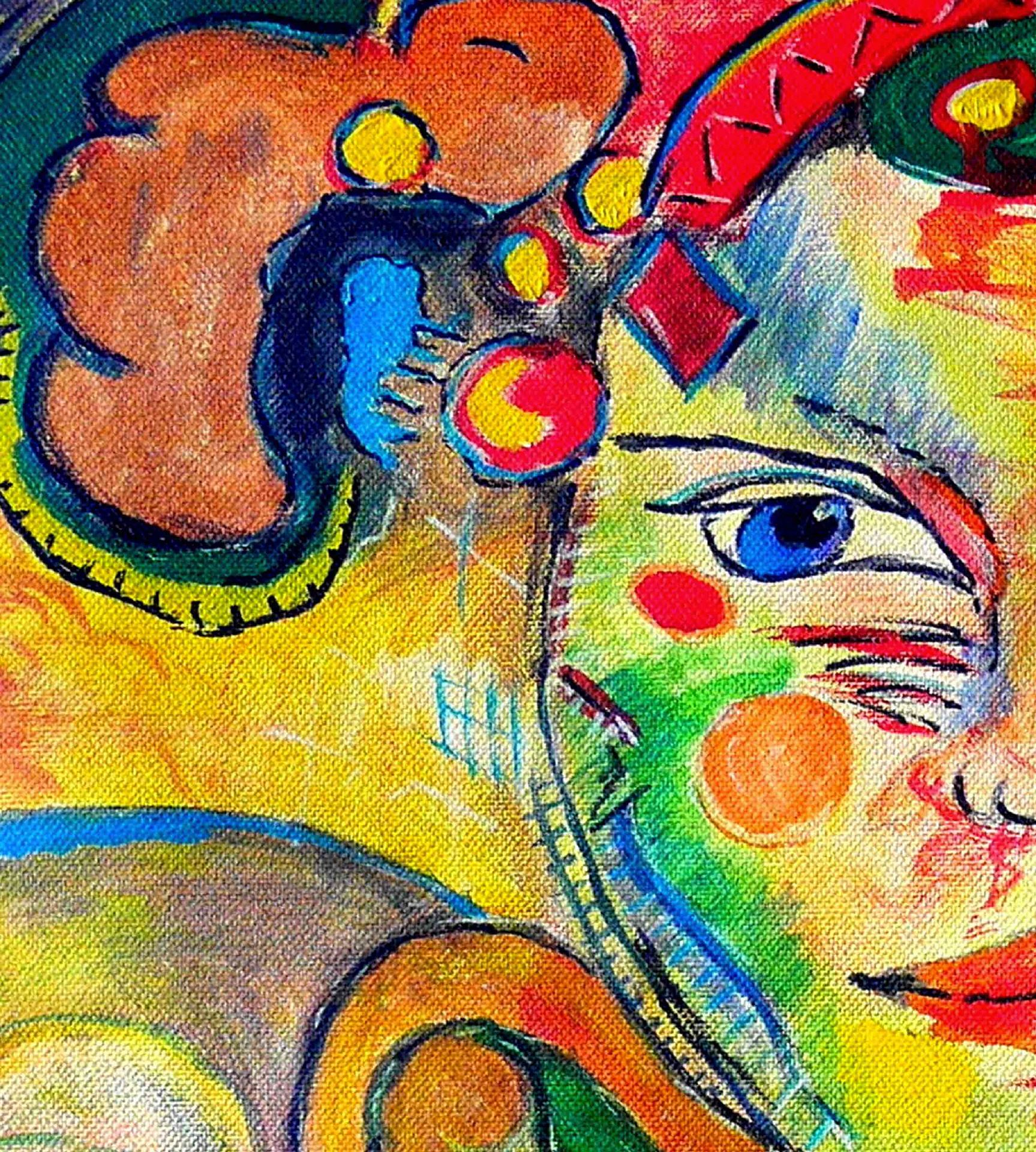 Das Kunstwerk "Katzenfrau" wurde in Acryl auf Leinwand gemalt. Das Außenmaß dieses Unikates beträgt 50 cm x 40 cm x 2 cm.