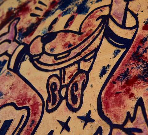 Das Kunstwerk "cat duck fox in happiness" ist ein Holzschnitt (Verlorener Schnitt) auf Holzplatte. Das Außenmaß dieser Holzdruckplatte beträgt 41 cm x 53 cm x 5 cm. Das Kunstwerk ist die Originalplatte für den Holzdruck. Der Holzdruck hat eine limitierte Gesamtauflage von 8 Stück.