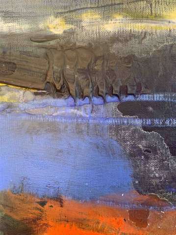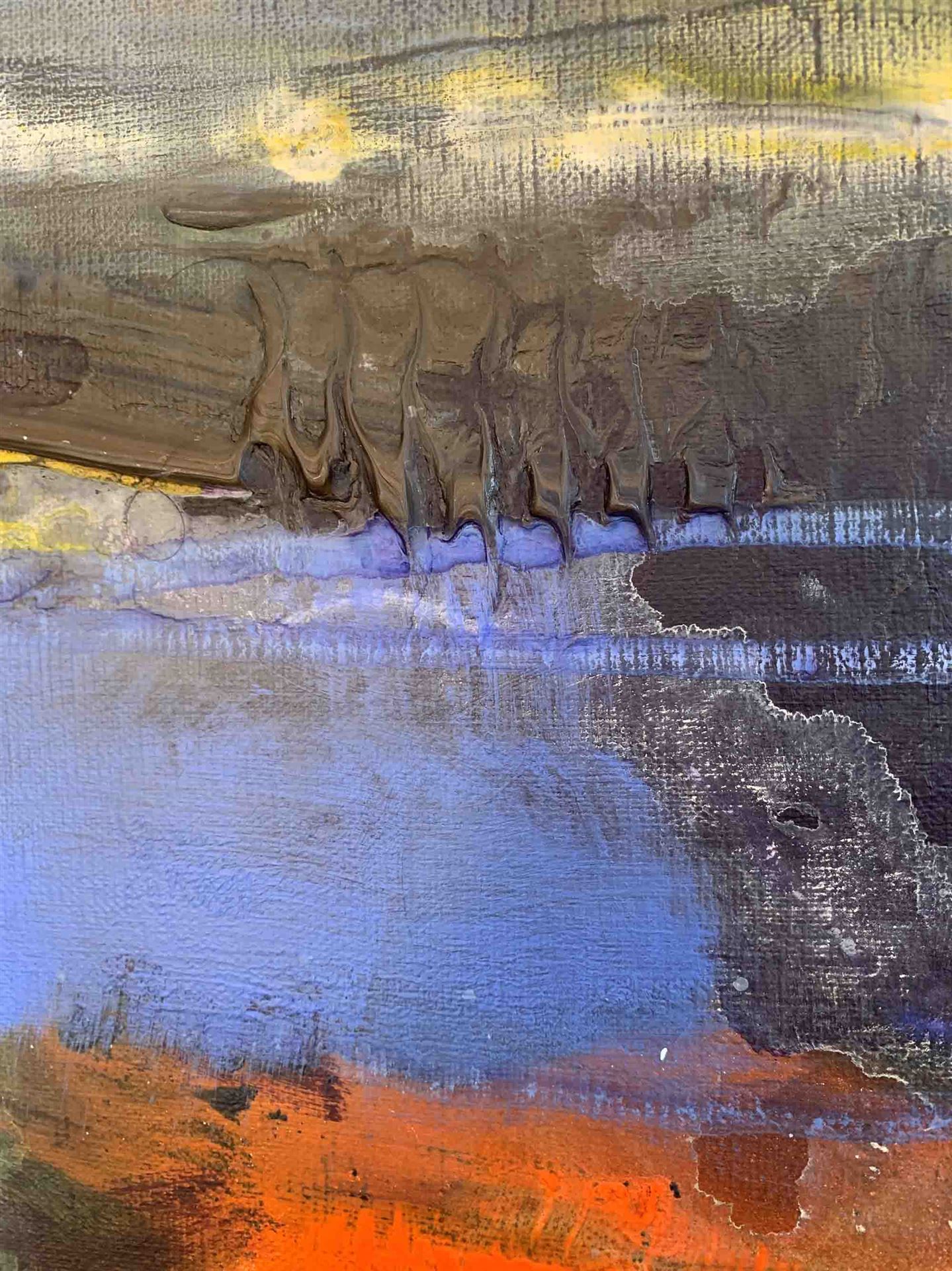 Das Kunstwerk "In einem unbekannten Land" wurde in Acryl und Mixed Media auf Leinwand gemalt. Das Außenmaß dieses Unikates beträgt 100 cm x 160 cm x 2 cm.