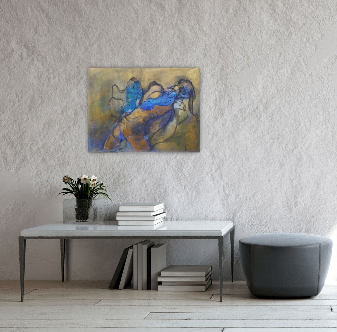 Kaufen Sie jetzt Malerei online bei CRELALA KUNST. "Untrennbar" ein modernes, zeitgenössisches Gemälde in Acryl und Kohle auf Leinwand von Marion Hämer.