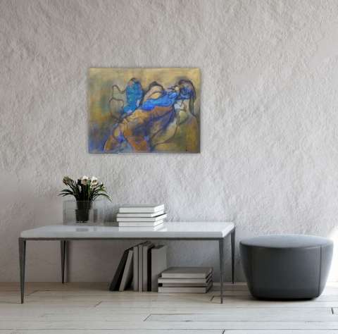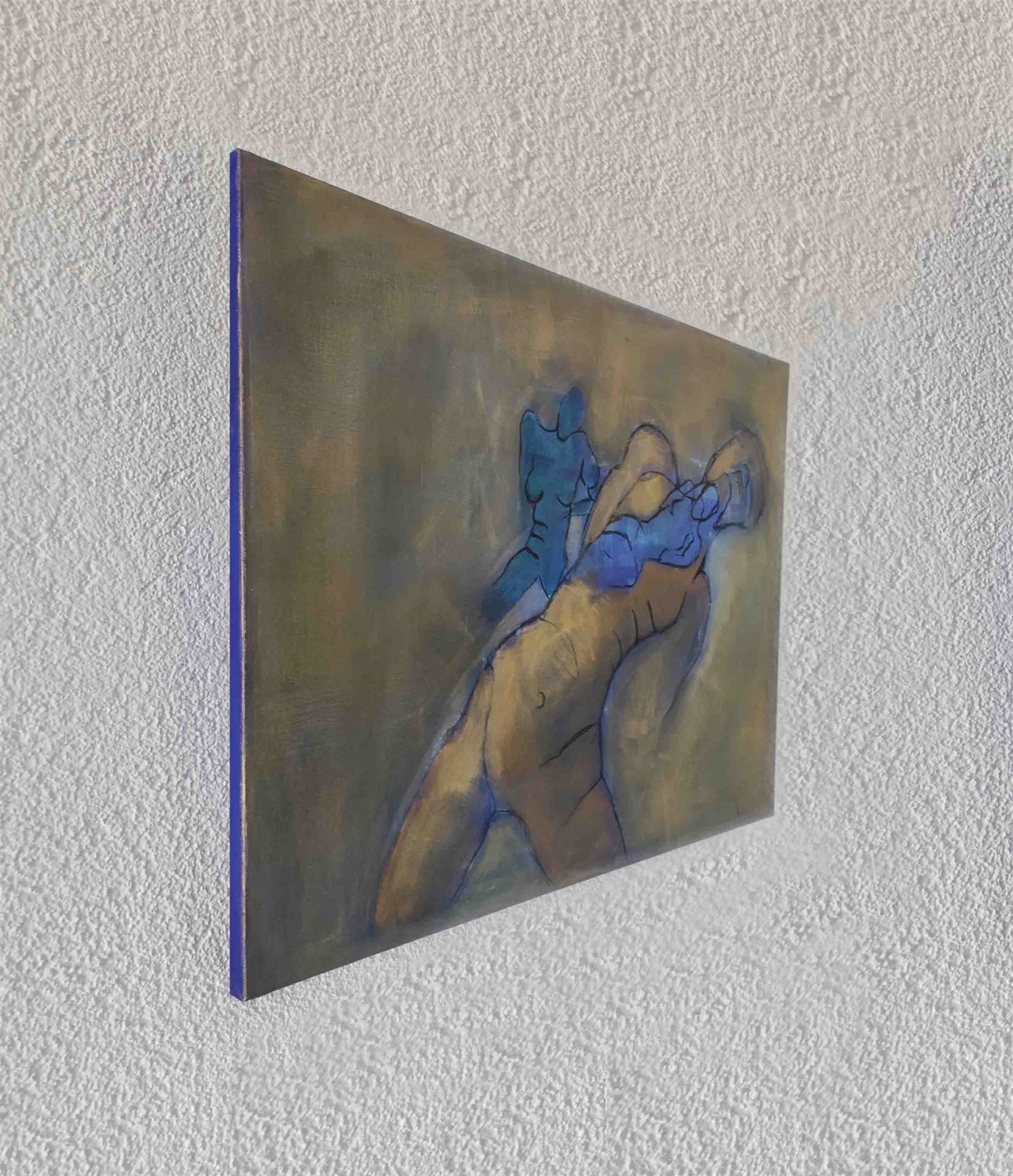 Das Kunstwerk "Untrennbar" wurde in Acryl und Kohle auf Leinwand gemalt. Das Außenmaß dieses Unikates beträgt 80 cm x 60 cm x 4 cm.