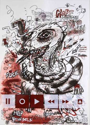 Kaufen Sie jetzt Malerei online bei CRELALA KUNST. "Die Überwindung der Enge" ein modernes Mixed-Media Bild aus der 16tlg. Serie Record & Play von Ralf Löhr.