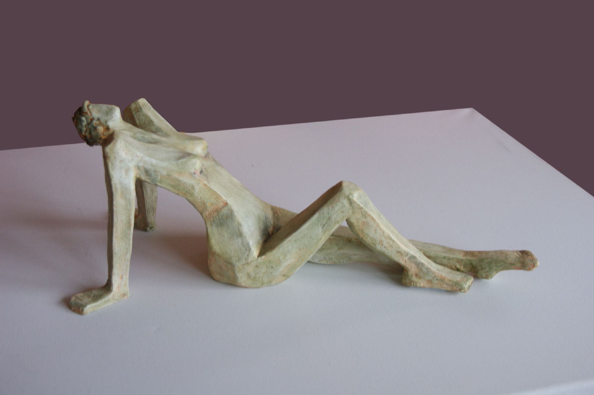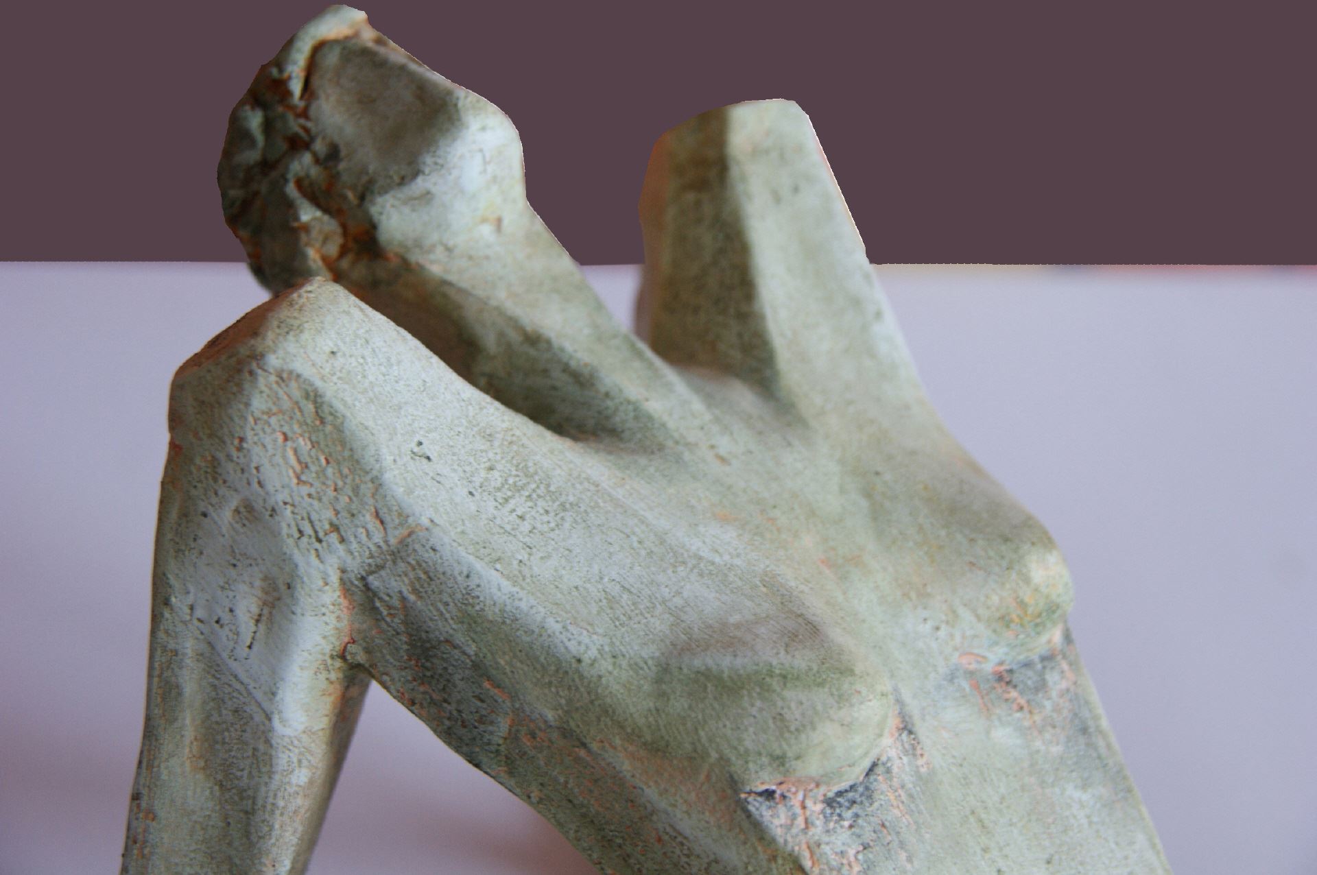 Die Skulptur "Hingabe" wurde aus gebranntem, patiniertem Ton erstellt. Das Außenmaß dieses Unikates beträgt 18 cm x 45 cm x 20 cm und hat ein Gewicht von 2,1 kg.