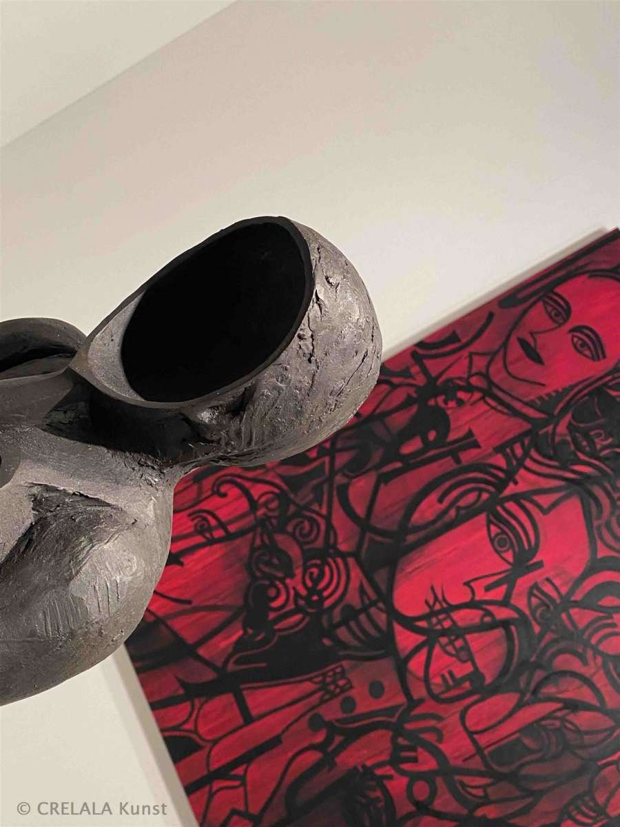 Neuss, Skulpturenhalle, ein Ort, an dem sich Fuchs und Hase Gute Nacht sagen, ein architektonisches Highlight von Thomas Schütte, in und vor dem aktuell Bronzen, Plastiken, Gebrannte (Ton-)Köpfe auf Säulen und eine neue Serie von Zeichnungen und Malerei des Künstlers ausgestellt sind. Es lohnt sich, mal vorbeizuschauen.