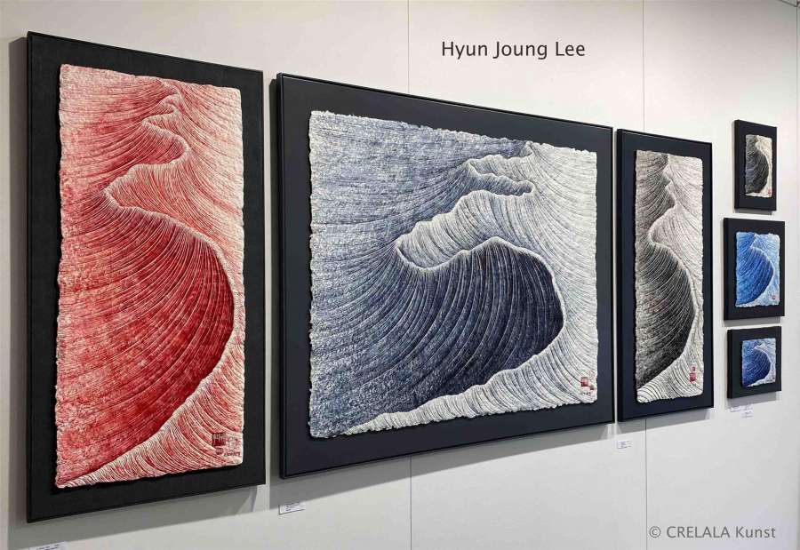 Das kleine Atelier liegt am Fuße des historischen Viertels in Bukchon, man tritt ein, weil man die farbenfrohen und kontrastreichen Werke am Ende des Hauses erkennt und neugierig wird. Man ist sofort im Bann der Werke. Ein paar Stufen nach oben und man kann