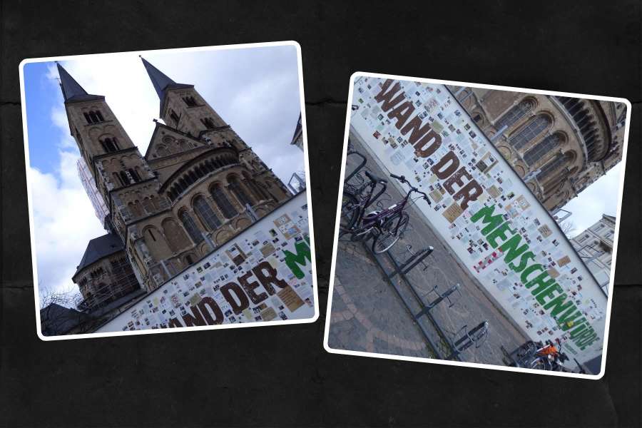 Ort der Stille, Ort der Kraft, Ort der Versenkung, und vor den Toren die Wand der Menschenwürde. Die Ausstellung Licht und Transparenz in der Bonner Münsterbasilika ist zu Ende, was bleibt ist Hoffnung auf ein Gemeinsam aller Völker und Kulturen.