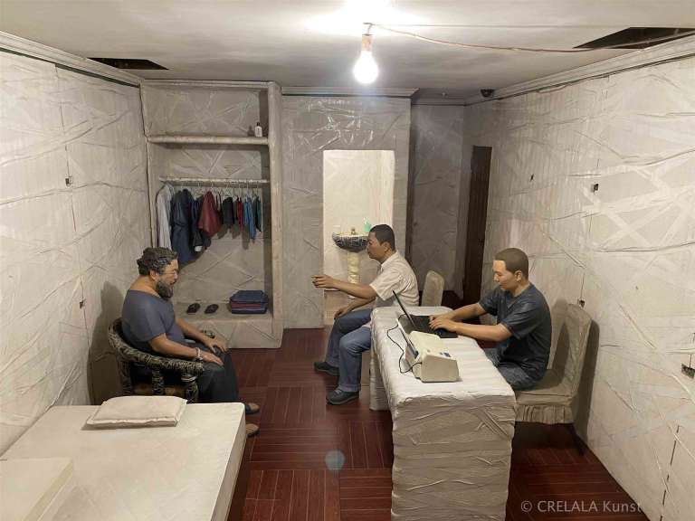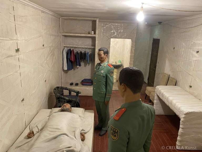 Links neben der voll überwachten, begehbaren Box, darf man selbst einmal Orwells Big Brother sein und über drei smarte Monitore jeden Schritt der betretenden Besucher überwachen. AiWeiwei hat seine Erfahrung überstanden. Lebt jetzt im Exil. Er sucht seinen Frieden in einem der Länder der westlichen Welt. Aber auch hier ist nicht alles Gold was glänzt. Die Kritik an den Systemen im Osten ist laut und Jeder, der etwas zu sagen hat, hat sich schon eine Meinung gebildet. Eine Meinung, von der er nicht abrücken möchte. Eine Meinung über Menschen aus anderen Kulturen. Aber was ist mit den Menschen der eigenen Kultur? Was macht den Menschen aus? Warum nimmt man sich das Recht heraus zu urteilen? Zu verurteilen? Einzuteilen und ab- oder aufzuwerten.