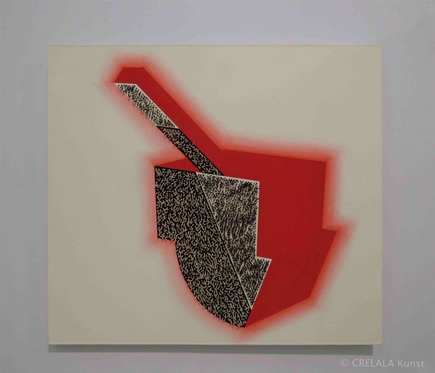 Um das Spiel mit dem Unterbewusstsein geht es in der Solo-Show von Osi Audu bei Sakhile&Me. Der Nigerianer spielt mit der vollkommenen Abrückung der bekannten Form und zeigt die Abstraktion „Maskierter Köpfe“. Ruhe (blau), Unerschütterlichkeit (rot), Weisheit (lila) ragen in den Raum hinein, so scheint es zumindest auf den ersten Blick. Das Hirn spannt einen Raum auf, den es eigentlich nicht gibt. Die Stofffasern ragen aus der Ebene, wie Teppichfasern, und scheinen den dreidimensionalen Eindruck zu unterstützen.