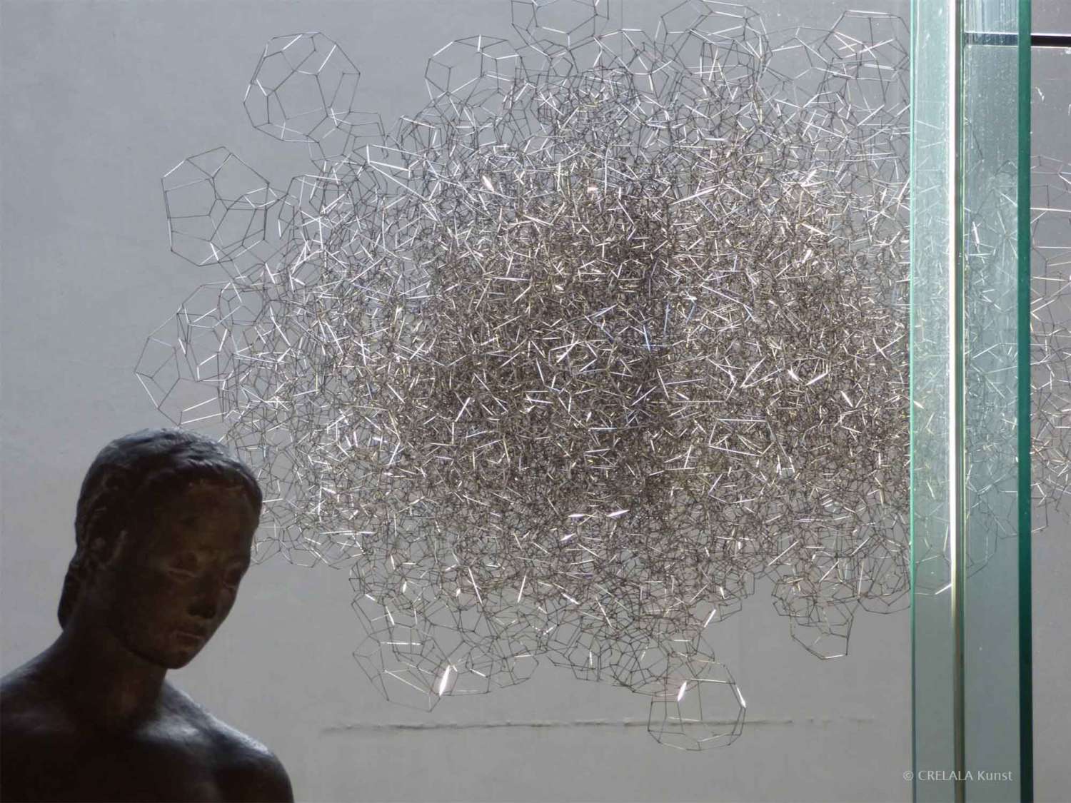 Die Arbeiten sind wie Studien. Theoretische Methoden, ohne einen Rechner einschalten zu müssen, um begreifbar zu machen, wie Netze funktionieren. Wie elementare Verbindungen und / oder Moleküle zusammenhalten. - Arbeiten, in denen die Wirklichkeit durch Arbeiten in Auge-Hand-Koordination entstehen. Wie ein Archiv der Grundgerüste von Netzwerken. (In der Hoffnung, dass der große Lockdown nicht kommt, kann man hier anknüpfen.)