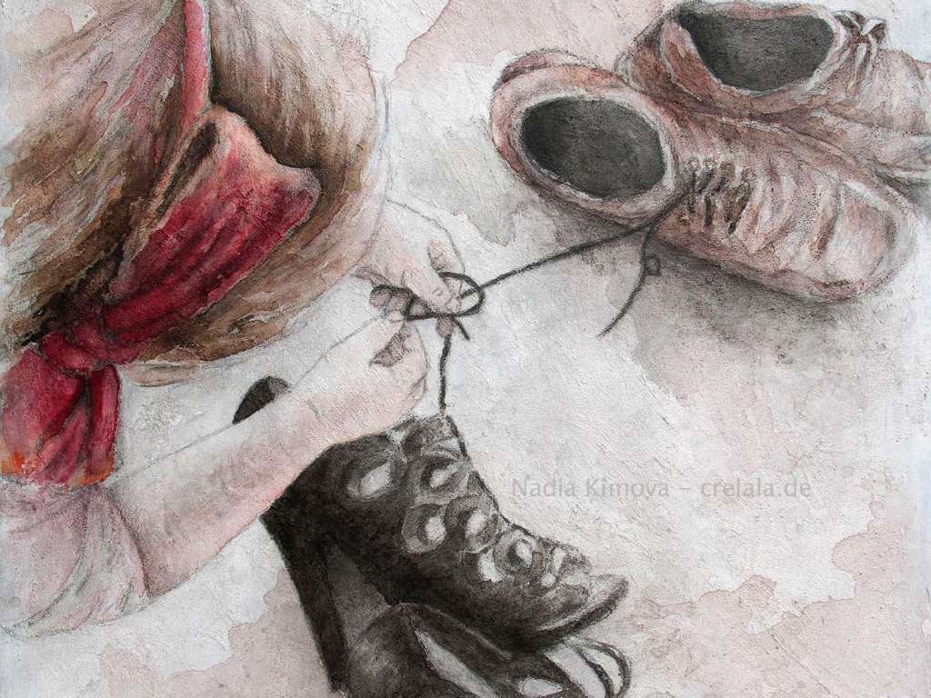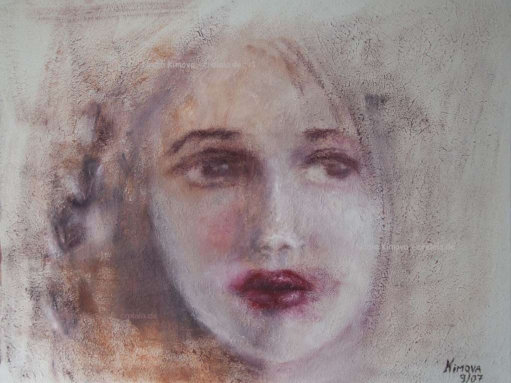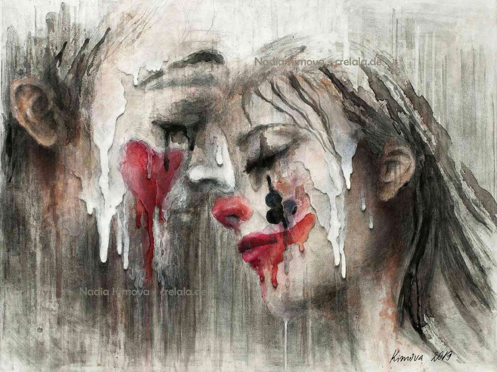 Mit der Flüchtlingswelle seit 2015 kommen neue Impulse wie bei der Frau mit Kopftuch von 2016 und Nadja Kimova wechselt zu einer ihr ganz eigenen Art von Mischtechnik. Jüngst beleuchten ihre Werke Beziehungen auf einzigartige Weise. Die Brücke zwischen uns von 2018, Maske des Vertrauens, oder Verratene Nähe von 2019 zeugen von einer bedrückenden Traurigkeit. Meisterwerke der lautlosen Erzählkunst. Werke, die tiefgreifende Geschichten erzählen, in denen man sich verlieren kann und die einen nicht mehr loslassen, hat man den Blick erst einmal darauf gerichtet. Es ist spannend zu sehen, wie Nadia Kimova psychoanalytische Themen umsetzt und man ist gespannt, welches Thema sie als nächstes aufgreifen wird.