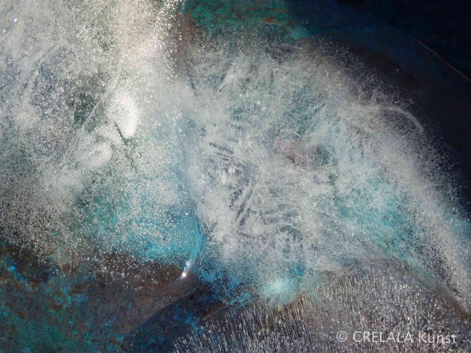 Das H, das erste Element im Periodensystem, mal zwei, in Kombination mit O,… Sauerstoff! Inbegriff für Leben,…! Und die Genialität der Schütte´schen Arbeit erschließt sich, wenn schon nicht auf den ersten, dann doch auf den zweiten Blick. Die Arbeit des Künstlers ist, wie bei so vielen Künstlern, (geo- )physikalisch, chemisch, biologisch, mathematisch interpretierbar!