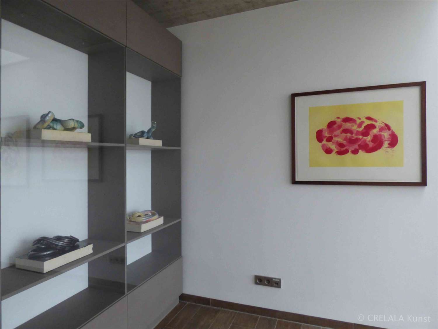 Und mit der Fantasie spielt Thomas Schütte auch in den Spiegelungen der Glasuren. Mal mischbar, eigenwillige Farben ergebend, mal nicht mischbar, gut getrennt nebeneinander verlaufend, neue Strukturen ergebend, das Material, die Oberfläche überziehend, versiegelnd, gegen weitere Einflüsse, vielleicht vor Verwitterung schützend. Vielleicht mit einem experimentellen Gedanken, kristalline Strukturen hervorzurufen. Vielleicht, so wird möglicherweise manch einer vermuten, in der Versuchung natürliche Prozesse nachzuahmen. Wie das Wachstum von (Eis-)kristallen. In der Hoffnung dem Klimawandel Einhalt gebieten zu können. Es selbst in die Hand nehmen zu können, was auch immer an Vorgängen in der Natur existiert. „Intelligentes Design“! Welche Temperaturen bewirken was? In welchen Verbindungen? Welche Rahmenbedingungen sind notwendig, um das gewünschte Ergebnis zu erzielen? (Quergedacht in jede Disziplin hinein.)