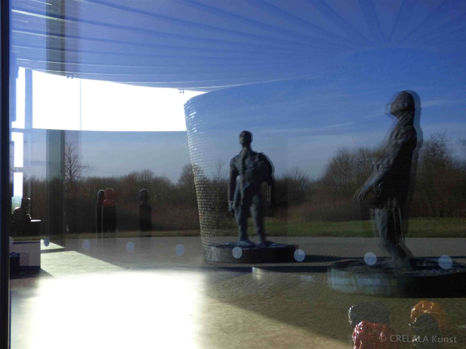Für einen kurzen Moment darf man sich fragen: Welche Stoffe reagieren miteinander? - Wie? - Was können Wind und Wetter Kunst anhaben? – Den Plastiken! – Den Skulpturen! - Je nachdem, welche Stoffe bei Wind und Wetter mitschweben, im Wind. Je nach Stofflichkeit der Skulptur. Des Materials, der Form.