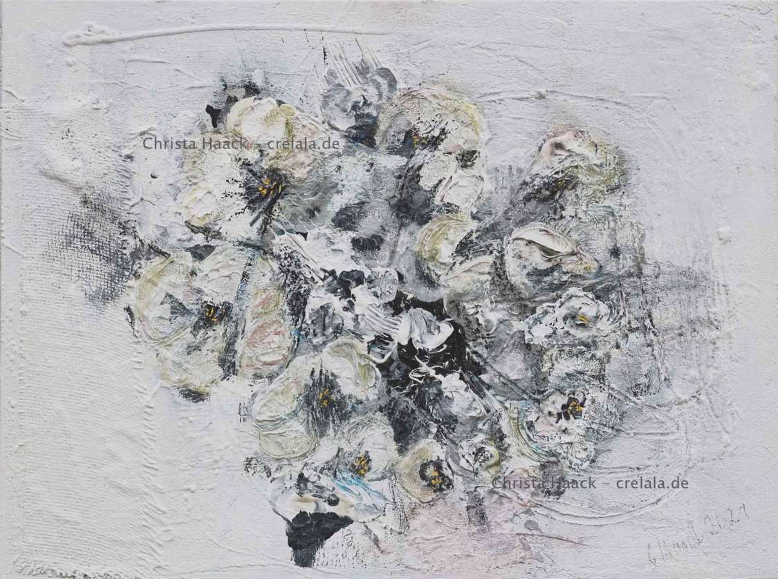 Abstrakt ist Christa Haacks Passion! - Abstrakt, weil Farbe und Struktur gefühlt werden. Weil der Prozess des Erschaffens nicht nur Abbilden ist, sondern ein tiefes Eintauchen in Sphären, die sich nur Wenigen öffnen und erschließen.