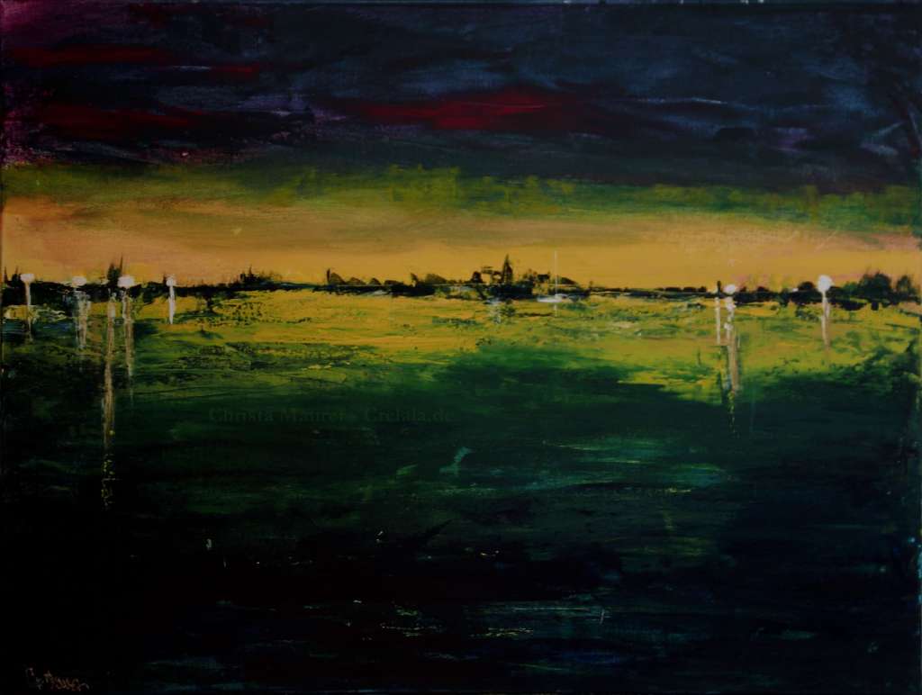 Vom Anblick des Feuerhimmels kann man sich kaum lösen. Rot glühend, unter dem ein einsames Heim, wie ein Silberstreif am Horizont, ein Hoffnungsschimmer in weiß leuchtet. - Leuchten soll? – Wie am Ende eines Krieges, den man nur aus den Medien kennt, wie „Vom Winde verweht“ während das reale Leben draußen stattfindet und an einem vorüberzieht, ohne, dass man es wahrnimmt, weil man noch immer nur verharrt in alten Bildern, wie all den Regentagen am „Broadway“, als in den großen Kinos die Stars und Sternchen in großen Limousinen vorfuhren und sich ihr Stelldichein auf dem roten Teppich gaben. Als Glanz und Glamour noch verzaubern konnten. - Damals! – Wann war das noch gleich?
