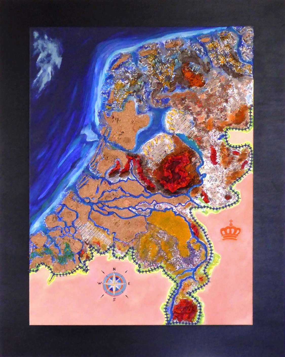 Nicht immer einfach für alle Beteiligten. Weder für Konsumenten, noch für Hersteller. Aber wie es Corina Hagedorn-Hähnels Skulptur „Gemeinsam Wirken“ surrealistisch beeindruckend zeigt, eine Idee, die sich sehen lassen kann. Dass Kunst dazu dienen kann über das rein Sichtbare hinaus eine Aussage zu hinterlassen ist nicht unbekannt, nicht immer erschließt sie sich, aber sie fasziniert. Was das Werk Niederlande 3D betrifft steht man davor und erinnert sich an all die Space-Ansichten, die man schon in Satellitenbildatlanten oder auf Orbitfotografien gesehen hat. Man lächelt bei der Vorstellung, dass man von oben auf den Planeten herabschaut und sieht, wie klein und unbedeutend der Mensch im Gefüge des Ganzen doch ist, was er gern vergisst, denn in seinen Händen liegt es den fragilen Planeten nicht zu zerstören. Ja ihn vielleicht sogar so zu gestalten, dass sich alle darauf wohl fühlen können. Das Ziel Paradies ist eine besondere Herausforderung. Die bereits existierenden Paradiese nicht zu zerstören eine drängende Aufgabe.