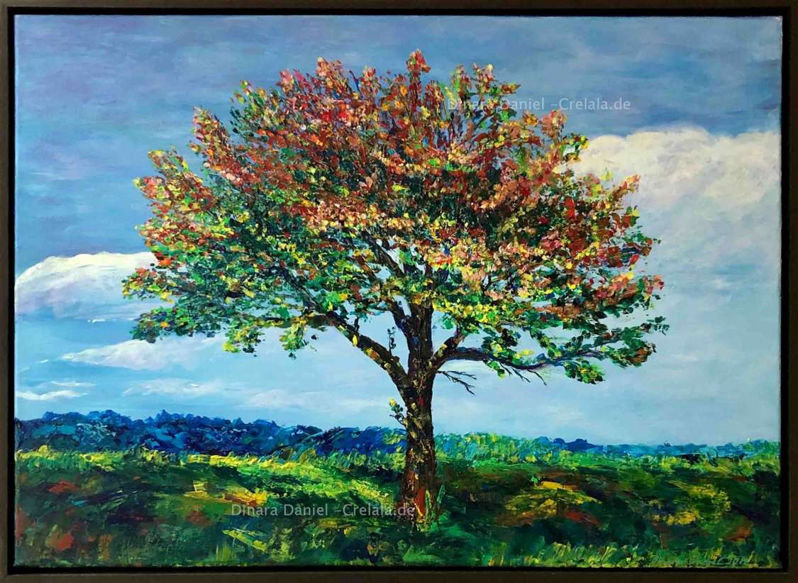Ähnlich intensiv wie die Beziehung zu den Frauen in ihren Bildern ist die Faszination der Bäume, wie man an Werken wie „Lebensbaum“, oder „Wenn der weiße Flieder wieder blüht“ unschwer erkennen kann. Dabei begleitet sie das Zitat des libanesischen Autors Khalil Gibran „Bäume sind Gedichte, die die Erde in den Himmel schreibt.“