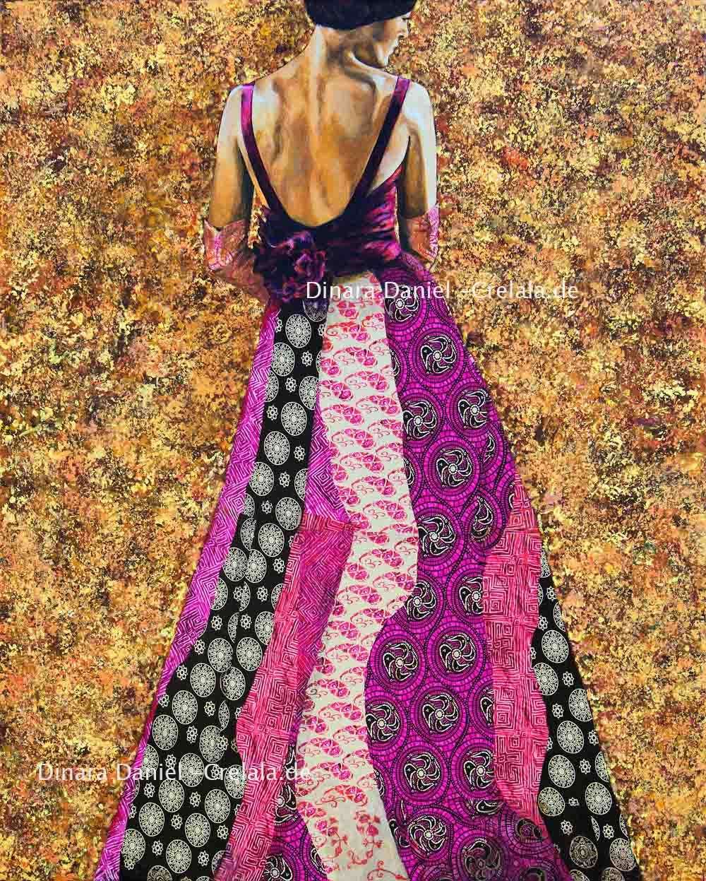 Hinter jedem ihrer Bilder steckt eine besondere Geschichte, die sie bewegt hat und Inspiration in ihrem Leben war. Und Dinara Daniel ist fasziniert von Phänotypen, vor allem auch bei den Frauen, je nach Herkunft. Die Besonderheiten, die Schönheit, die Besonnenheit, im Malen kann sie auch den eigenen Gedanken ganz freien Lauf lassen.