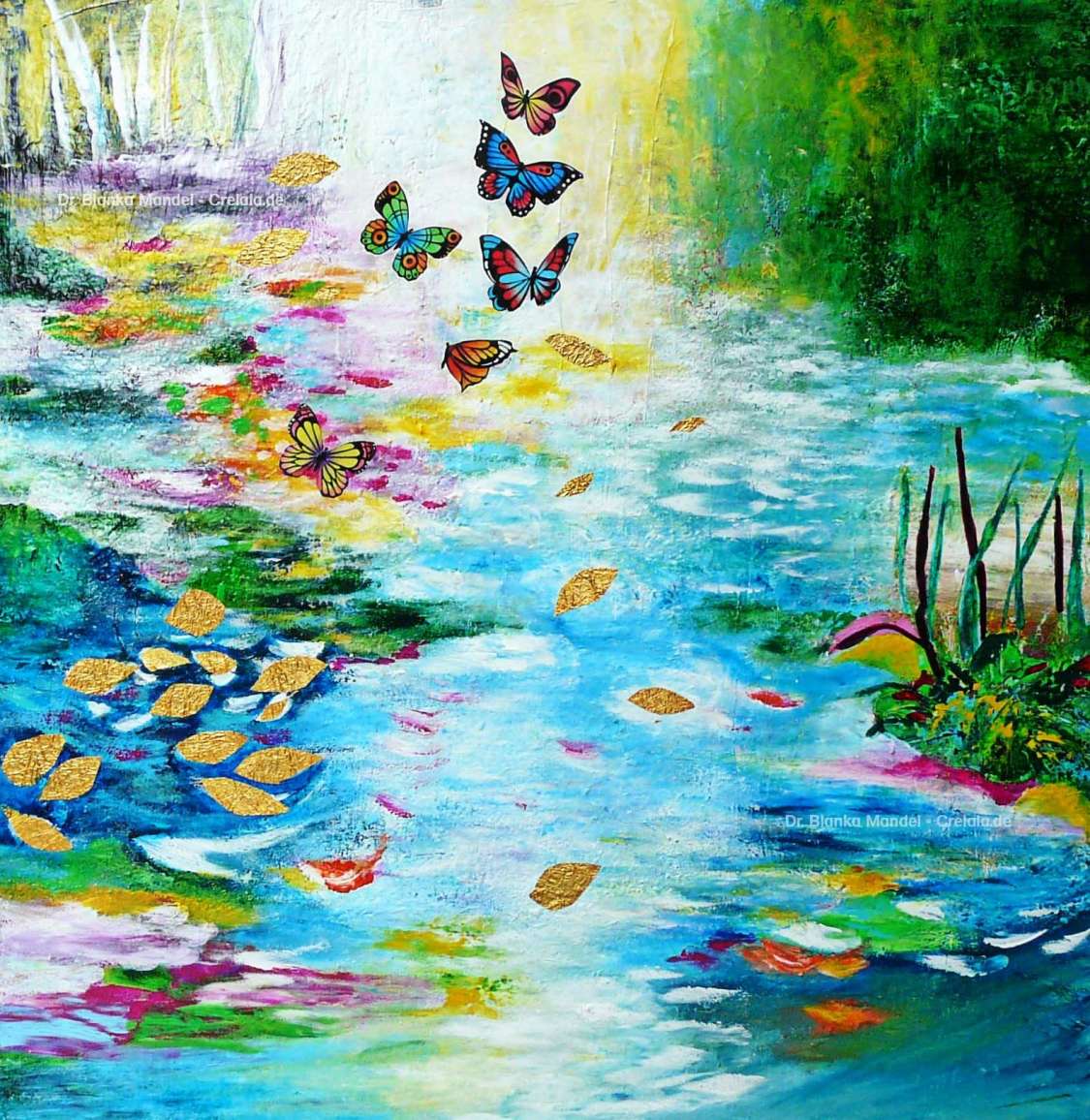 Dr. Blanka Mandel verknüpft gesellschaftliche Themen und Fragestellungen, bindet positive Stimmungen ein und gibt malerische Inspirationen! - Wohlfühlfarben! - Emotionale Aufheller, durch nur einen kleinen Seitenblick im bisweilen auch dunkeldüsteren Arbeits- oder Gedankentunnel.