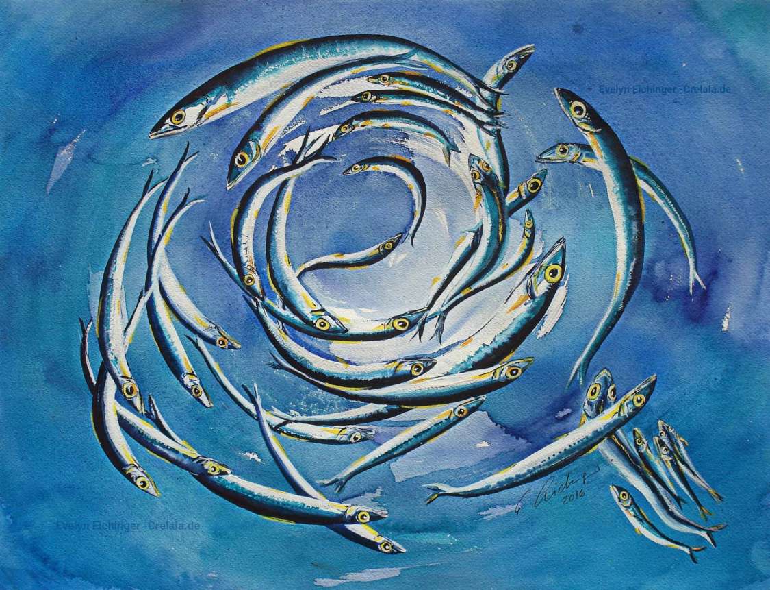 Fische im Blau der Ozeane, gelbe Nebellandschaften über blühendem Raps, rotierende Fischschwärme, Schilfgras im Wind unter verlaufender Abendsonne im Dunst der Atmosphäre, Farben, die sich ändern, dem Unter-,… Hintergrund anpassend,…reflektierend, absorbierend, verschwimmend…– kleine Wunder. …
