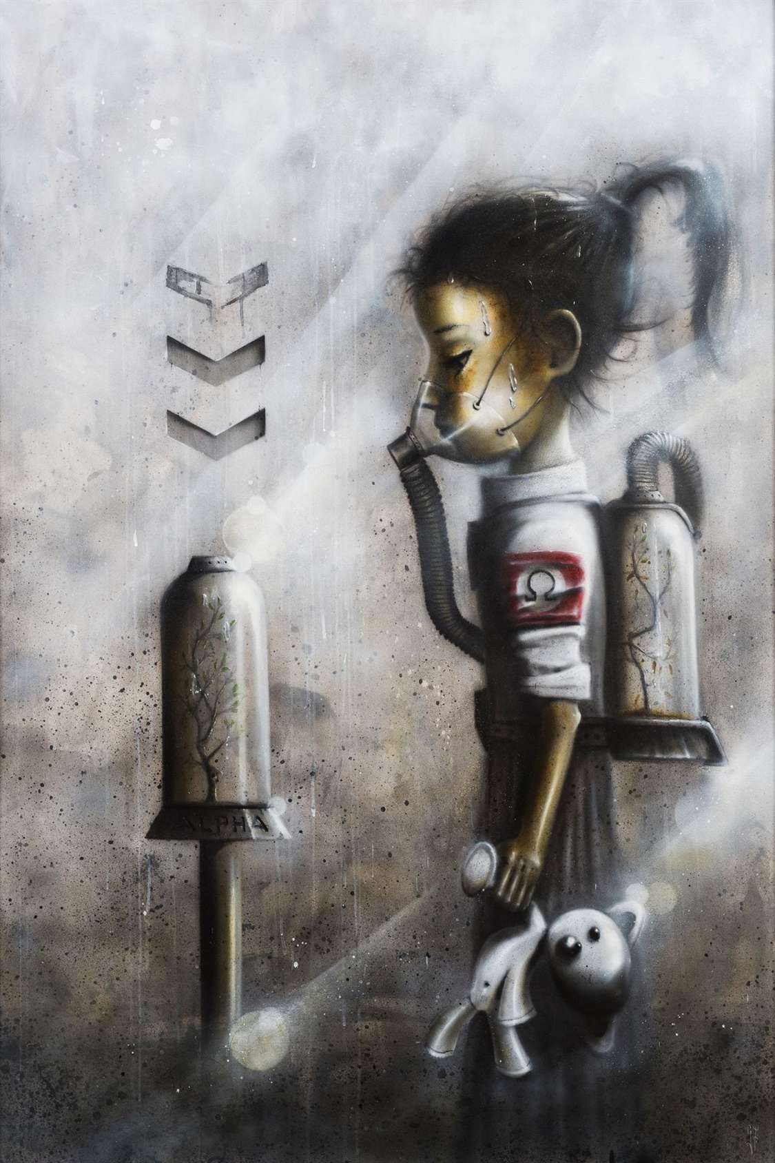 Vor allem die Serie „Evolution Alpha – Omega“ aus der einige Werke bereits an ein Museum in China verkauft wurden, lässt nicht mehr los. Düster und dunkel, farblos und vom finstersten Ende kündend, ist sie zu Beginn des Jahres 2021 näher, als man während der Entstehung 2018 anzunehmen gewagt hätte. Der Betrachter darf selbst eine Antwort darauf finden was der Künstler sagen will. Betrachtet man Georg Pummers Arbeit durch die ganze Zeit seiner Entwicklung als Künstler, erkennt man von Anfang an die Richtung. Das wachsende Gesamtwerk entwickelt sich zu einem Meisterwerk. Man durchsucht das Netz und die sozialen Medien nach allem, was man über Georg Pummer finden kann und klickt sich durch. Man lernt den Künstler und seine Arbeit immer besser kennen und die Neugier wächst. Georg Pummer versteht sich aufs AIR Brushen, kennt sich aus mit Autos, und verpixelt Mädchen malerisch, als wolle er GRID Girls und andere Beauties aus ihrem Dilemma herausmalen. Bei „One bullet left“ assoziiert und interpretiert man mit der bei facebook gegebenen Information, dass Pummer Vater ist. „One bullet left“!!! - Nur für alle Fälle. - Man kann sich vorstellen, was er meint. Und dann denkt man wieder an die Serie: „Nothing is forever.“ Das Grübeln über die Bedeutung und ein Foto des Künstlers bei der Arbeit, das Smartphone in einen Selfie-Stick eingespannt, das entstehende Kunstwerk als Übertragung auf Leinwand in groß dahinter, bringt Bewegung in die eigenen Gedanken. Das Bild, ein Foto von einem Kind. - Ein Porträt. - Pummer, der Überträger. Das Medium der Übertragung. Die Verpixelung gibt den Hinweis auf die Quelle. – Was macht dieses Foto in Kombination mit all den anderen mit unserer Fantasie? – Brauchen wir Tabus?