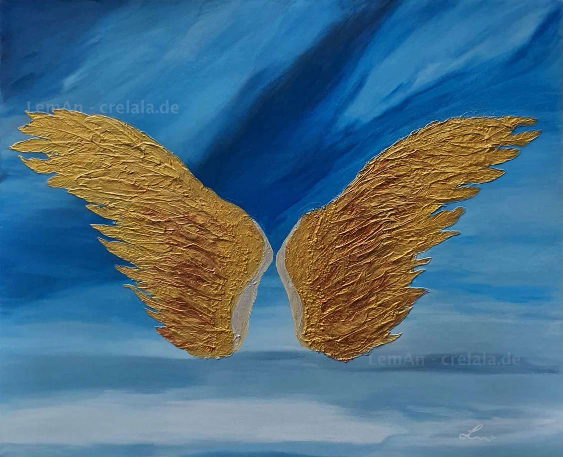 Die Engelsflügel haben eine besondere Bedeutung: Federn, als Teil von Flügeln. Das Luftige, das Leichte, das Besondere, das was tragfähig ist,… durch die Leichtigkeit und den gleichzeitigen Widerstand gegen die Gravitation! – Die Masse ist das Geheimnis! – Fast wie eine leise Mahnung Masse zu reduzieren. - Zu minimieren… Federleichtigkeit und das Schweben… in LemAns Werken wird es greifbar!