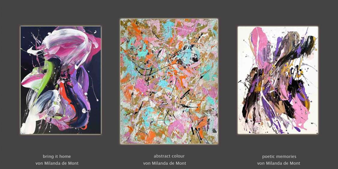 Milanda de Monts Arbeit ist nicht nur geprägt durch ihre künstlerische Ausbildung, auch die digitale Präsentation macht ihre Arbeit besonders. - Farbmischungen auf Leinwand, Spiegel der Lebensphasen. - Reflexionen der Zeit! - Zu erkennen ist das Loslassen. - Die Kraft der Freiheit!