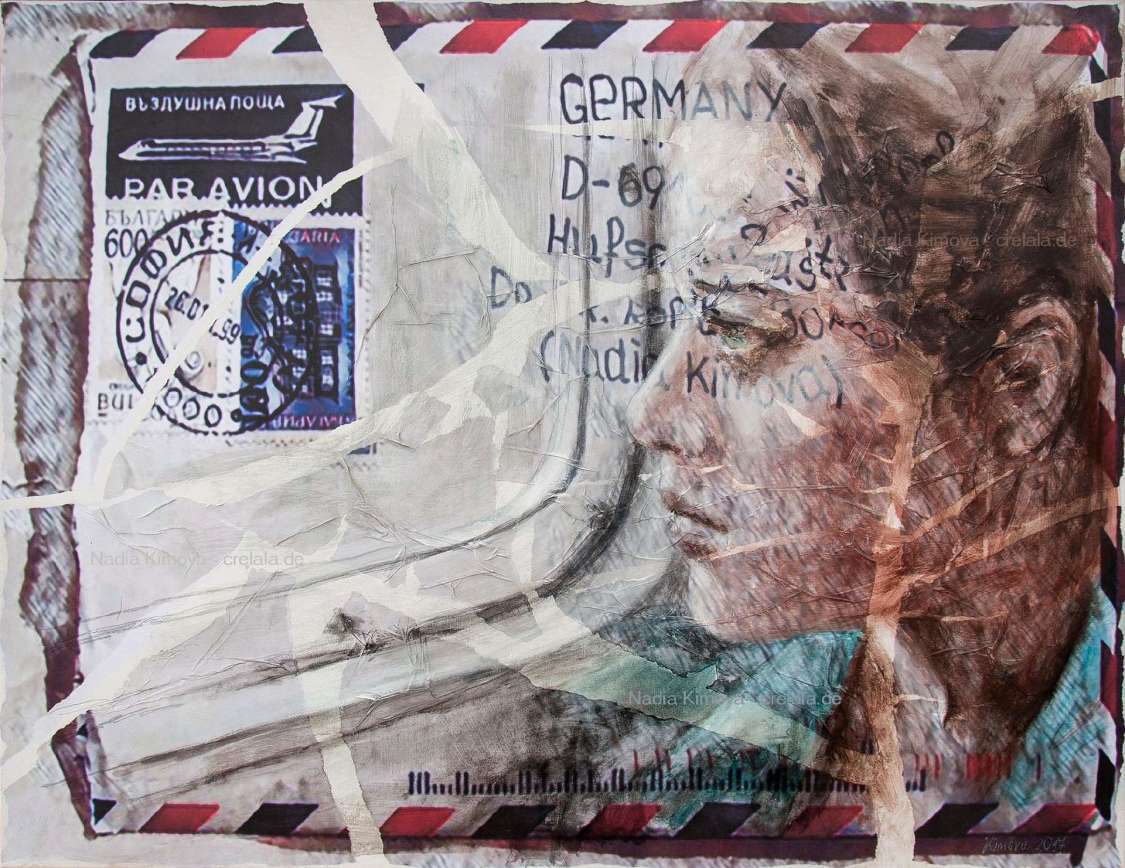 Nadia Kimova studierte in Sofia, später Mannheim, und arbeitet inzwischen in Karlsruhe. Sie hat eine lange Reise hinter sich, verschiedene politische Systeme und Kulturkreise erfahren, und kommt zu dem Schluss, dass das Wichtigste das Fühlen ist, das sich aus dem Reflektieren ergibt und das den Menschen ausmacht. Sich ausdrücken zu müssen und zu dürfen, die eigenen Gedanken über die Welt offen darzulegen, das schafft sie mit ihrer Kunst. Kunst als eine Sprache, wenn manchmal die richtigen Worte fehlen. Vor allem, wenn man in einer erlernten Sprache, einer Nicht-Muttersprache, kommuniziert, dann sagen Bilder vielleicht mehr, als Worte.