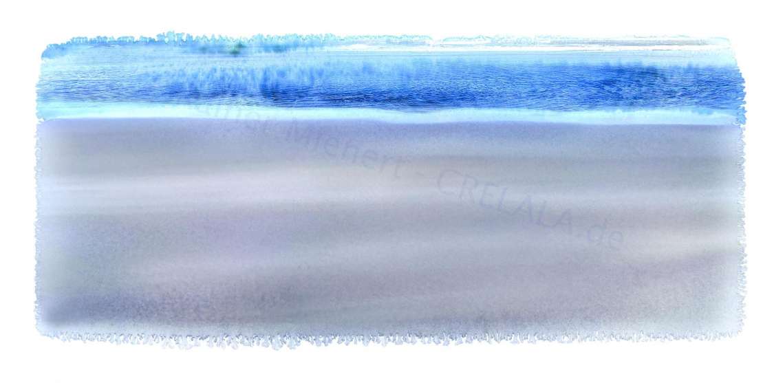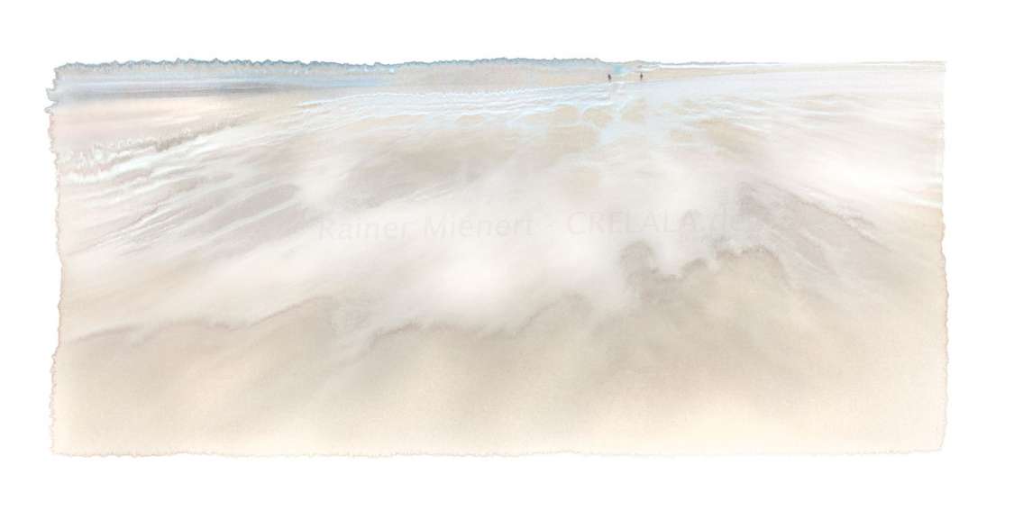 Sand und Wasser sind immer wieder Thema der Arbeiten des Künstlers. Horizont und Auflösung von Farben, je nach Licht. Linien, die beschrieben werden von sanften Wellen, je nachdem, aus welcher Perspektive man sie betrachtet, ihnen entgegenschaut.
