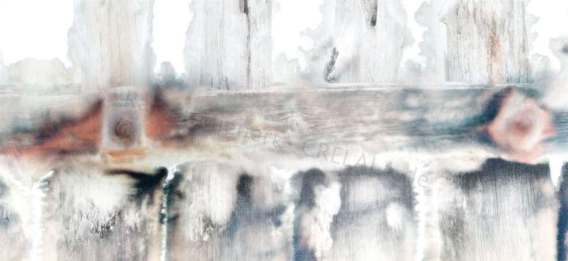 Die Aquagrafien des Werbefotografen sind Schönheiten, die dem Auge schmeicheln. Seine Arbeiten reflektieren die „Phasen“, mit denen er sich beschäftigt. Mal in Farbe, mal farbreduziert, mal in dunklen Tönen, mal in hellen. Die aktuelle Phase ist hell und licht. Mit dunklen Akzenten. Ein Werk trägt den Titel „Zusammenhalt“. Man muss genau schauen, dann erkennt man das Holz, zusammengehalten von einem Bolzen, rostend im Strudel der Zeit. Alternd. Etwas Dunkles, wie ein Schatten, wie dunkle Materie, gegen das Existenzielle wirkend, steigt aus der Tiefe empor. Die Auflösung, die scheinbare Bewegung im Bild, alles ist im Fluss, eingefroren in das Abbild dieses Moments der „Belichtung“, in dem die Vernichtung keine Chance hat. Alle Macht der Vektoren äußerer Krafteinwirkungen sind außer Gefecht gesetzt. - Das Abbild des Schattens gleichzeitig ein Mahnmal. - Eine Darstellung der Kräfte, die auf Alles wirken.