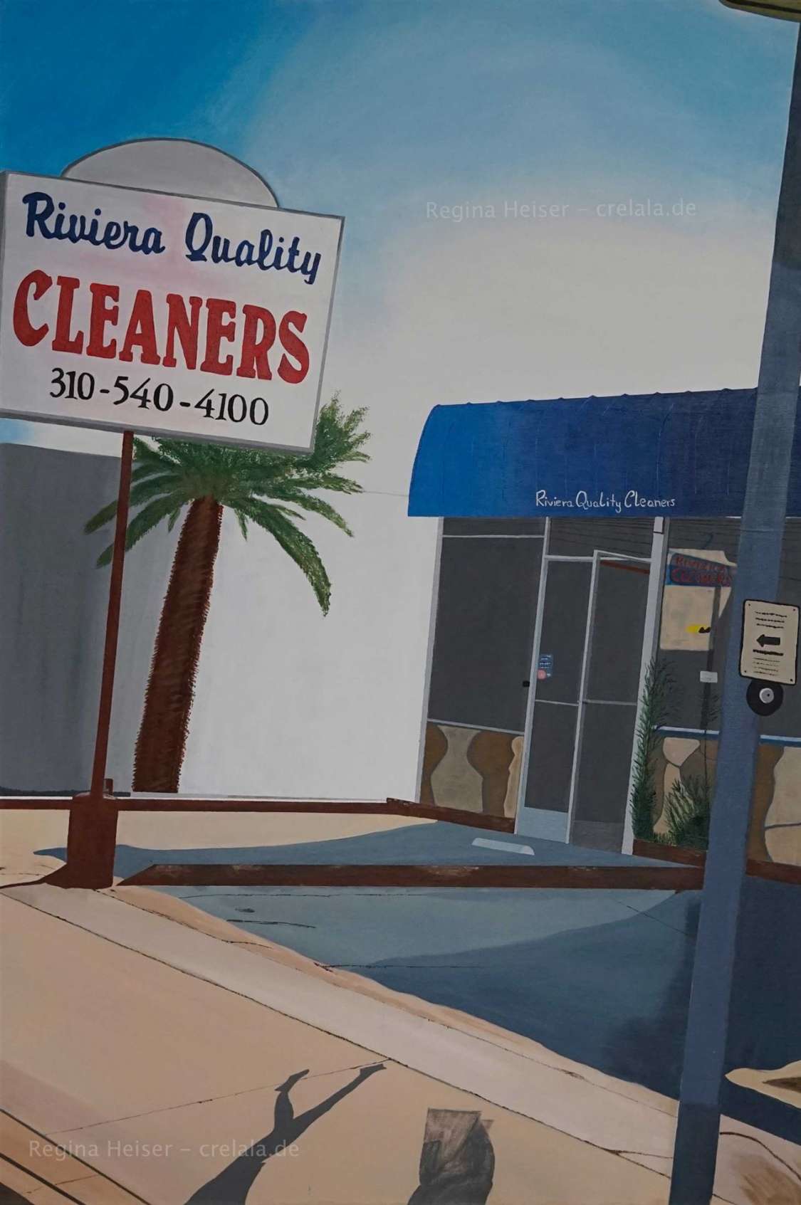 Die Darmstädter Künstlerin hat sich unter anderem mit Edvard Hopper auseinandergesetzt und seine Werke in der durch Gerhard Richter groß gewordenen Rakeltechnik, ursprünglich eine Druckerei-methode, unter Beibehaltung von Hopper´s Originaltiteln, neu interpretiert, und so das Belebte innerhalb der Räume schichtweise weggelassen.