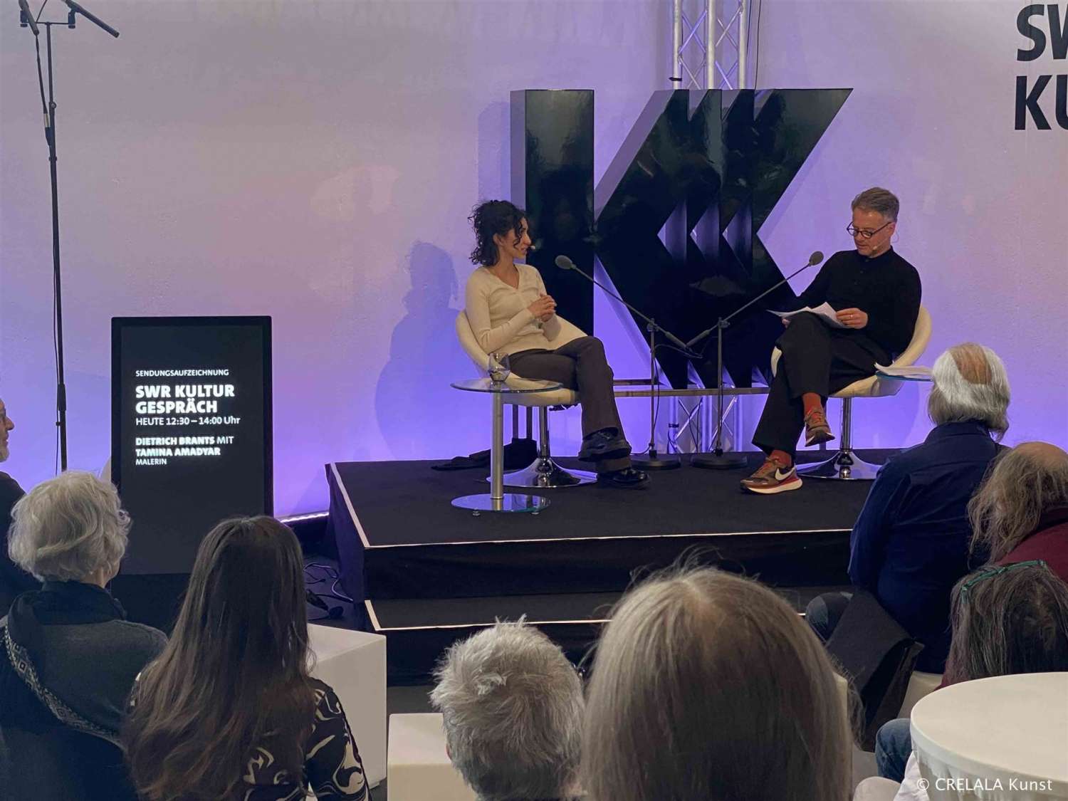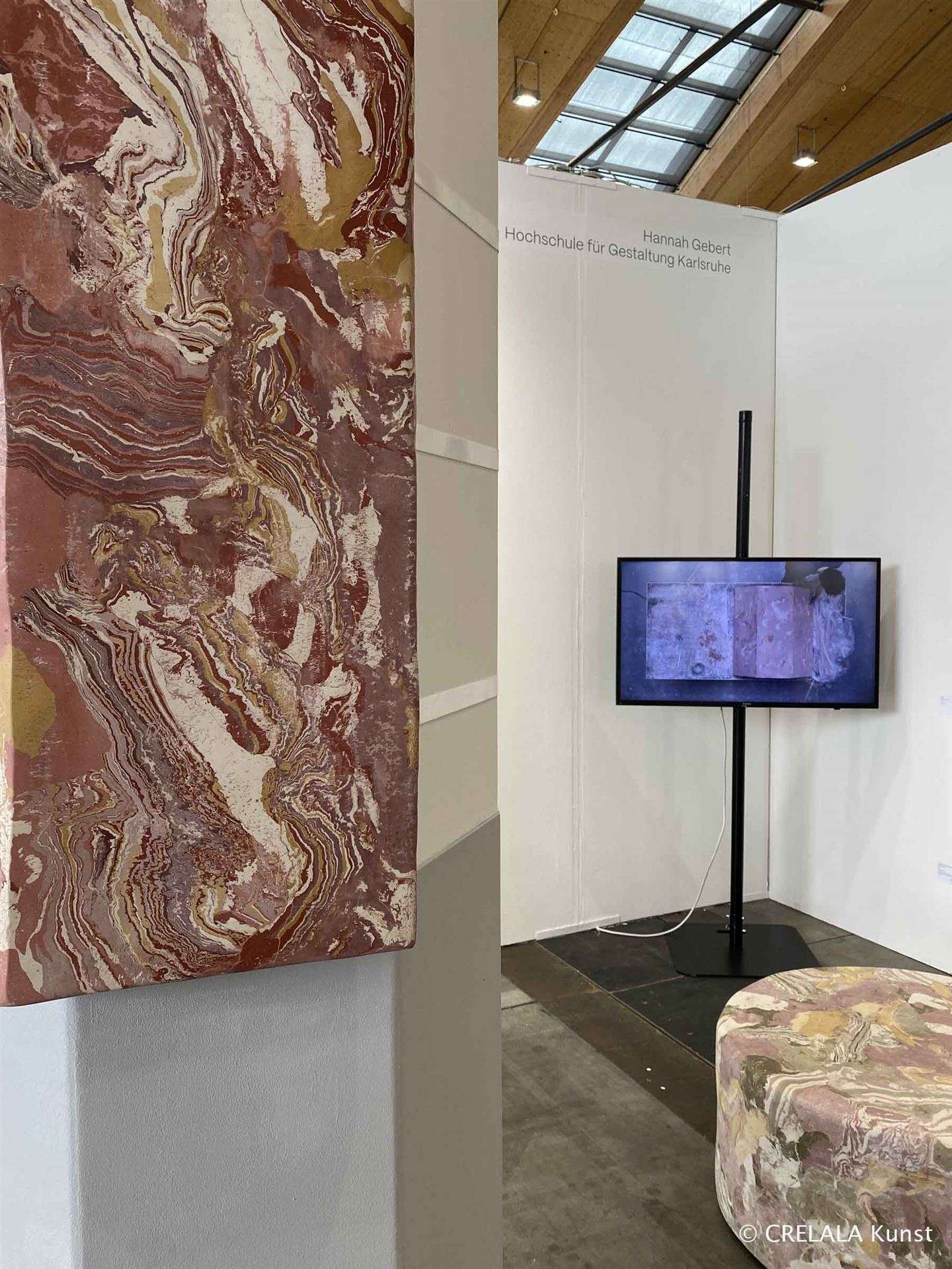 Bild-Style Communication! Wortfetzen in den Raum geworfen, regen zum Denken an. Angefangene, nicht zu Ende geführte Sätze hallen nach, wirken in die Tiefe. Es werden Instinkte geweckt. Das ZKM weiß und lehrt, und die Schüler präsentieren ihre Ergebnisse. In Halle 3 hat sich der SWR positioniert und sendet rund um Kunstgeschehen und Medienbetrieb auf der Messe. Preise werden hier verliehen und die ZKM (https://zkm.de/de) macht auf sich aufmerksam. Einer der Orte in Deutschland, an denen man sich intensiv mit Kunst- und Medienentwicklung auseinandersetzt und die Art der Kreativen verfolgt und steuert, die unsichtbar in alle Bereiche der Gesellschaft hineinwirkt und beeinflusst.