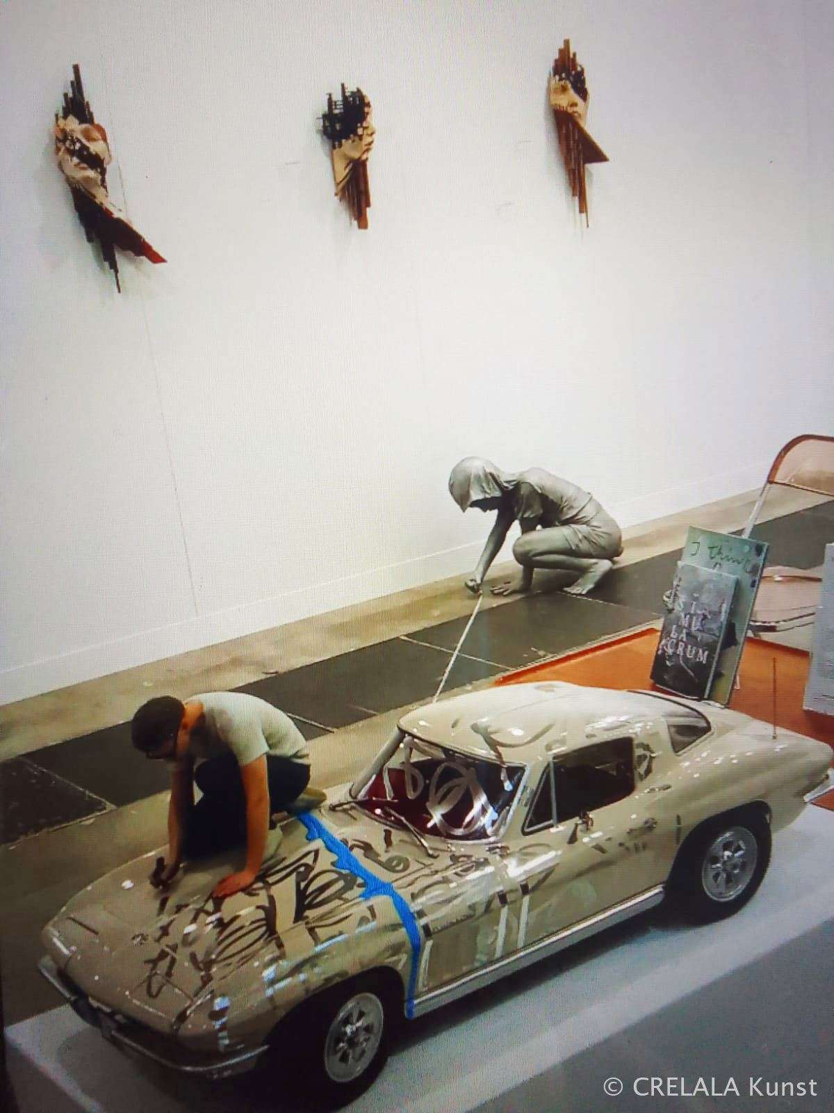 Alte Stoffe in neuer Färbung? Alte Karosserien neu lackiert? Ein wenig verrückt, ein wenig chaotisch, mit neuen Lacken,… einfach anders eben. Neuer Look für all die alten Schätzchen, wie es Kriesels übermalter Oldtimer andeutet. - Modifiziert, optimiert, zu neuem, abstrakt chaotischem Glanz im Shabby Chic gebracht.