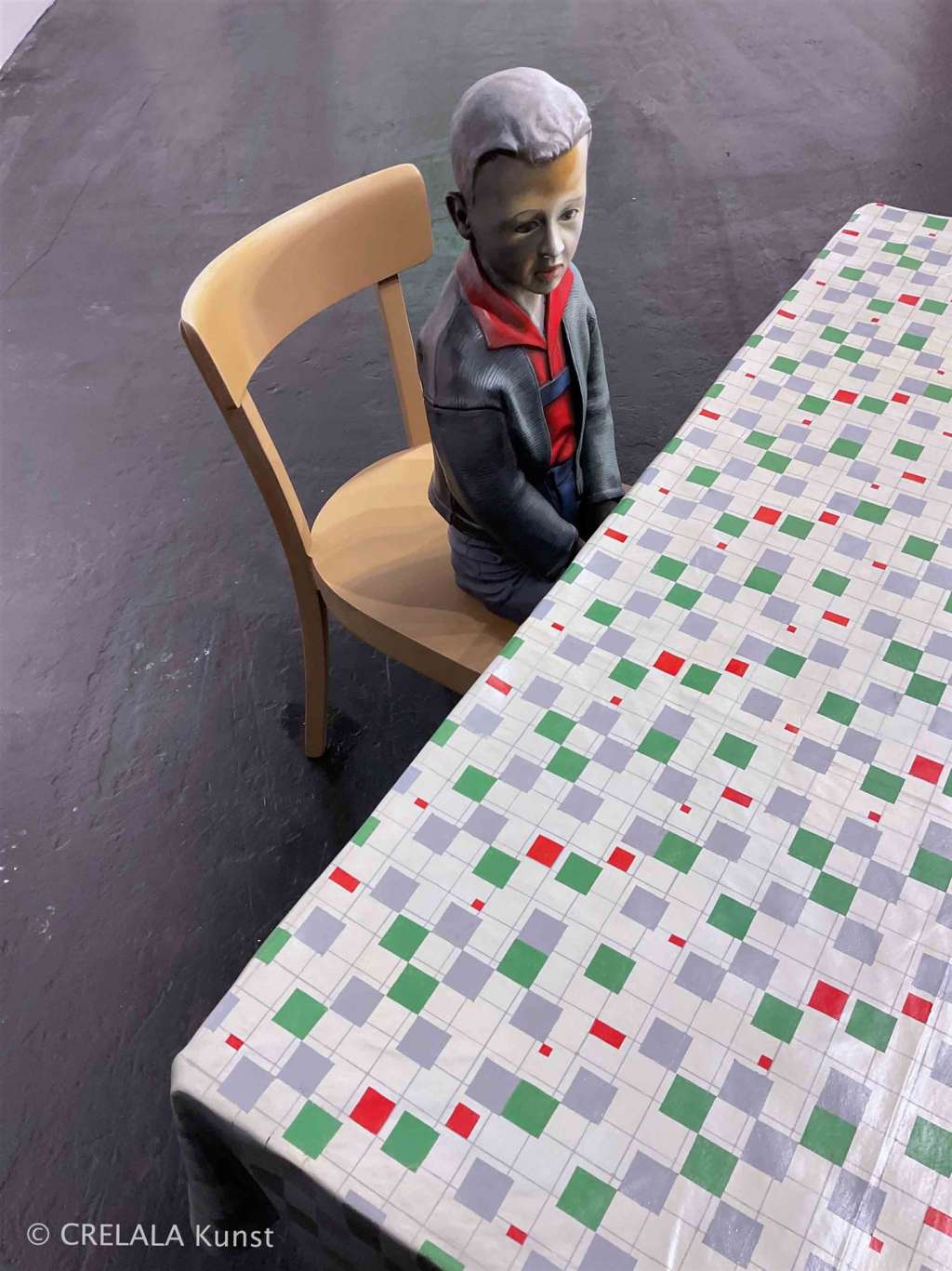 Thomas Schüttes Klinkertor und der einsam wirkende Junge am Tisch,… was wird aus den ein Skizzenblättern auf Entwurfsblöcken oder in DIN-A5 Heften, wie Schulheften von anno dazumal, wenn sich die Jugend ankündigt und mit der Pubertät alles Denken umgebaut wird?