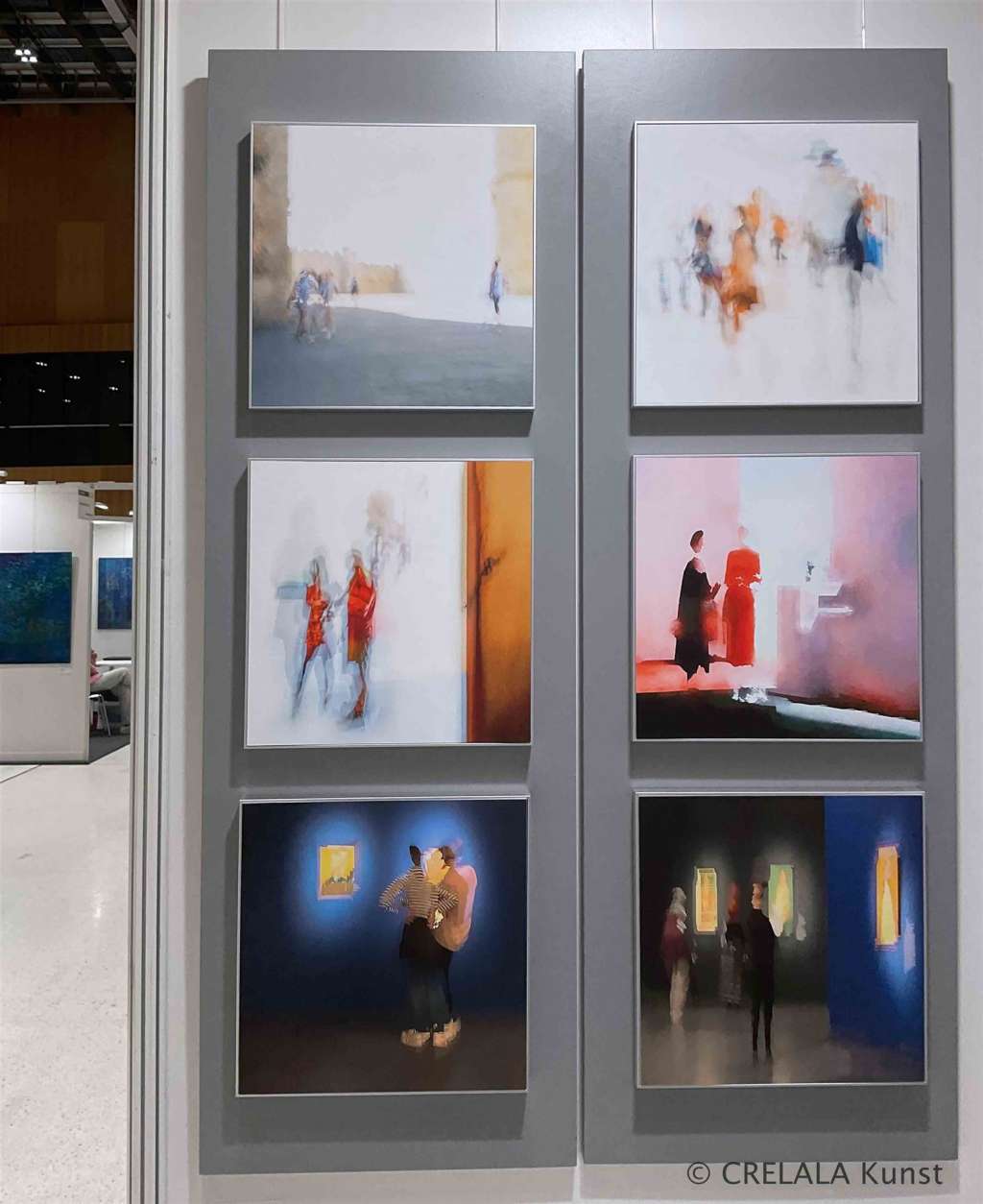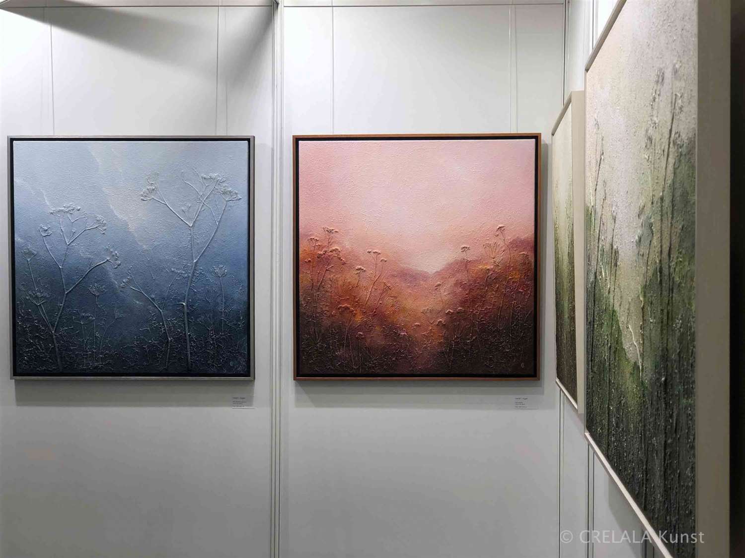 Ihre Schönheiten in luftigen Geweben, natürlich, nachhaltig, seidig, denen sie nicht immer Gesicht verleiht, wirken leicht und flüchtig. - Gefühlvoll. - Menschliches Anmuten. - Menschliche Anmut. - Menschlichkeit. - Mitten hinein platziert in die Abstraktion, die alles bedeuten kann.