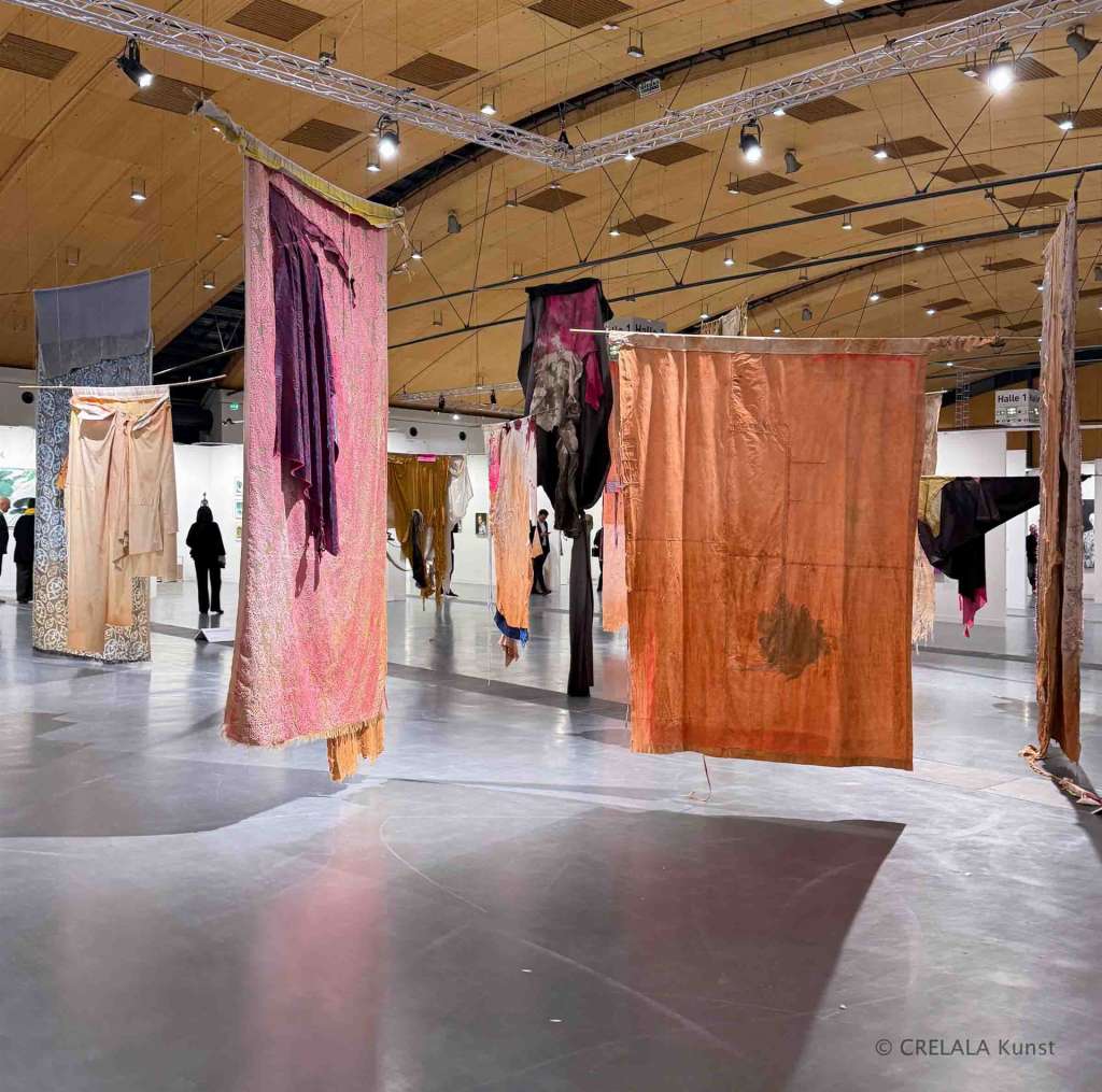 Stoffe, die wiederum weitere Möglichkeiten nach sich ziehen. Kreisläufe in Gang setzen können, in denen irgendwann gewebt und vernetzt werden kann. Die alten Gewebe, edelsten Stoffen bzw. Vorhänge gehangen im Wind, von Katharina Schnitzler bei mianki.Gallery geben eine Ahnung davon, wie man immer wieder danach strebt möglichst robuste und lang haltende neue Stoffe zu kreieren, die Zeit überdauern können und transportfähig