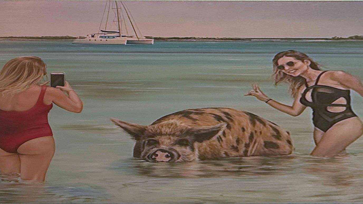 Badekappen und Badeanzüge, Geigen vorm Kopf, breitbeinig im Grünen Langkleid… warum auch nicht… es durfte anno dazumal, wie heute, und zu allen Zeiten auch mal anregend sein. - In der Kunst.