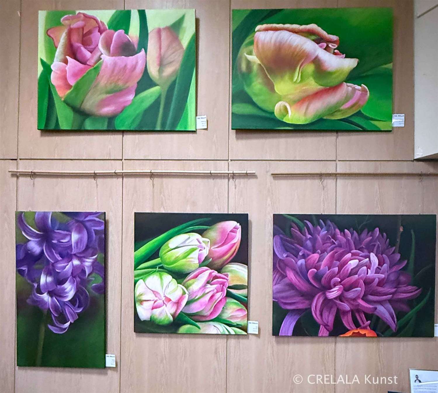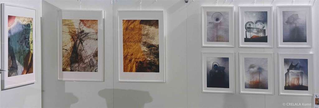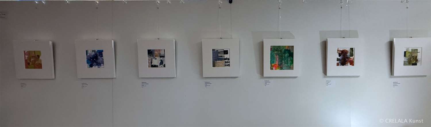 Von Miriam Bräutigam werden schlussendlich Handyfotografien gezeigt. Nicht überarbeitet, auf der rechten Seite zu Stillleben-Arrangements semitransparent mystisch zusammengesetzt und schließlich fotografiert. Links davon wiederum Papierarbeiten, in mehreren Schichten aufgebaut, bemalt, bedruckt, in drei bis sieben Schichten übereinandergelegt, dann auf transparenter Platte positioniert, von unten beleuchtet und fotografiert. – Das Ergebnis könnte man Collagen nennen. - Oder findet sich ein anderer, adäquat kunsttechnischer modernerer Begriff?