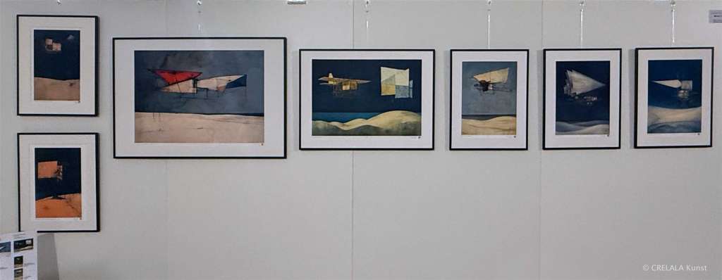 Spengler, sehr, sehr interessant, nutzt Neuronale Netzwerkgenerierung und in seiner Serie „Strand der Winde“ werden surrealistisch anmutende Objekte gezeigt, die aussehen wie Flugzeugmodelle, die geringere Schwerkraft suggerieren, ja vielleicht gar auflösen, warum vorstellbar wird, dass Häuser auch fliegen könn(t)en.