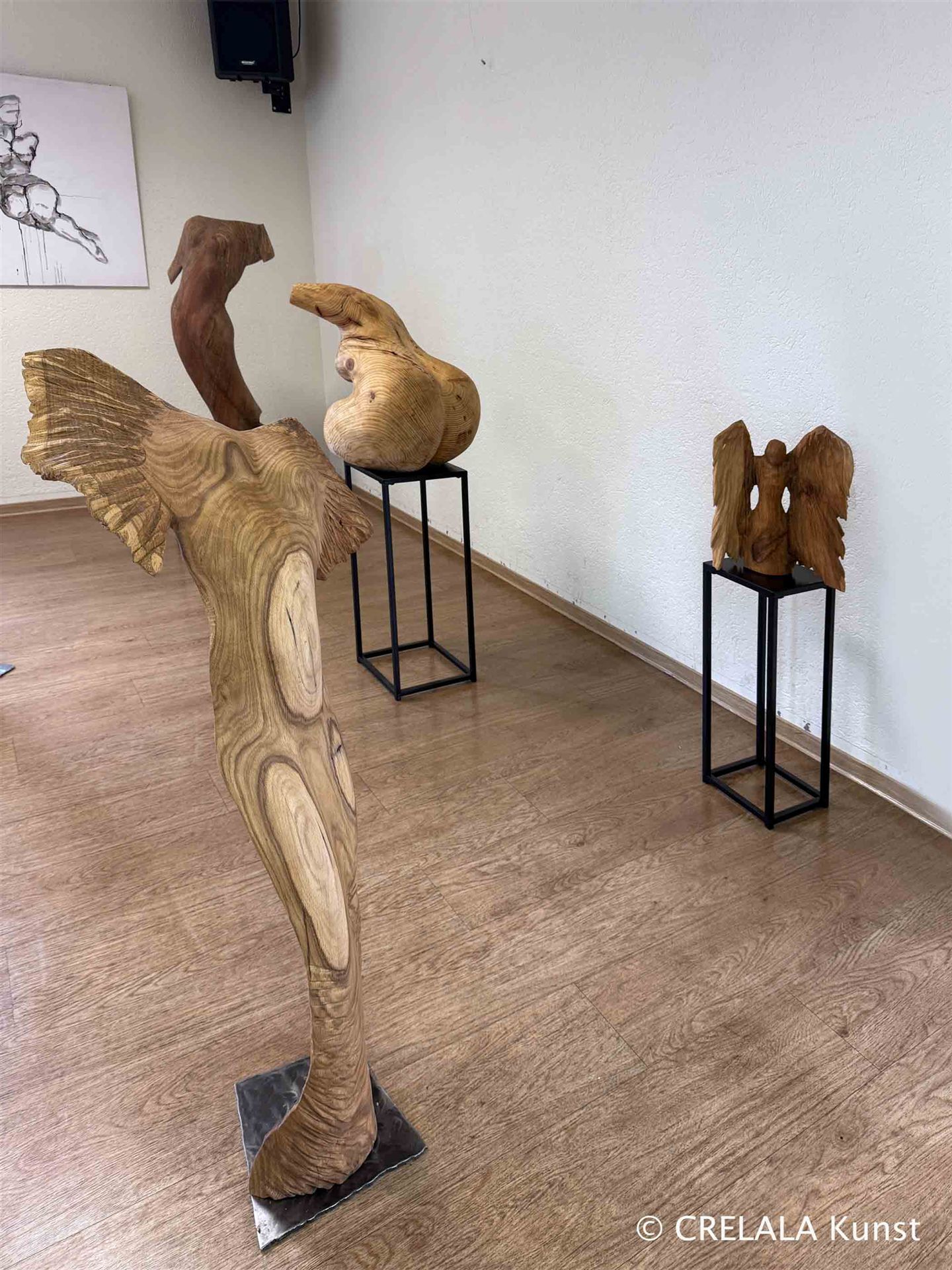 Eine Idee vom übertriebenen Nichts, vom Verzicht auf alles, um schön und ansehnlich, schlank und begehrt zu sein, bekommt man bei den hochgewachsenen Figuren von Gerd Steinle. Sind es noch Menschen, oder nur robotische Konstruktionen, sinnspezifisch modifiziert und entwickelt, in einer Gegenwart, die sich selbst, als menschliche Art überflüssig macht. - Spätestens jetzt darf das Leben wieder eingeladen werden teilzunehmen an der Existenz.