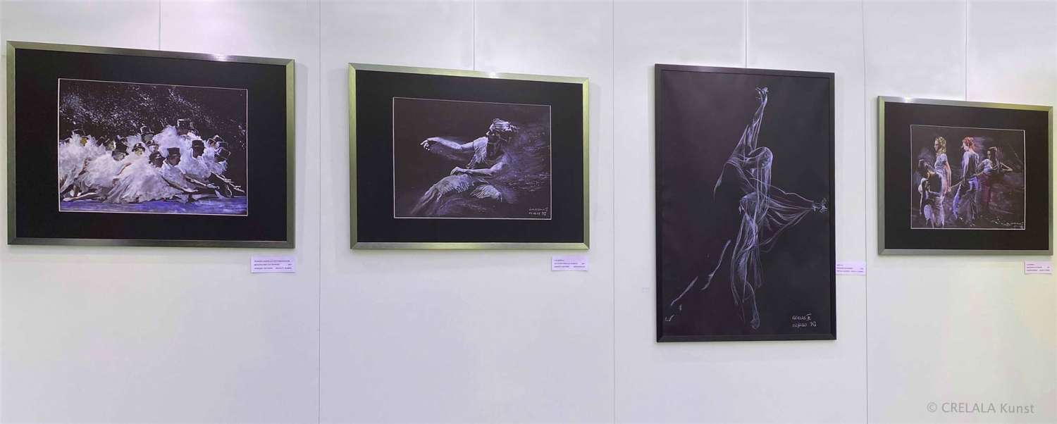 Wie Geister schweben Sie übers Papier, die Figuren des Gerhard Kartmann, der Körper auf schwarzem Untergrund tanzen lässt und das Weiße nur die Konturen beleuchtet, wie Tänzer in dunkler, finsterer Nacht! An Bühnenszenen und Theaterwelten darf man denken, an Spotlights und das Spiel mit Licht. Lichtphasen, Dunkelphasen, sich abwechselnd, ineinander übergehend, fließende Übergänge, Geist, der die Geschwindigkeiten verarbeitet, in der Bewegung ausgeführt wird. Der die Zeit dehnt, sie beschleunigt, verlangsamt, der sich ein Still denkt, oder aus einem Still heraus eine ganze Welt als inneres Movie abspielen lässt… Gerhard Kartmanns geisterhafte Menschenwelten, wie Körperstudien des Menschlichen sind traumgefangene Visionen, die uns entführen in die Erinnerung alter Bilder.