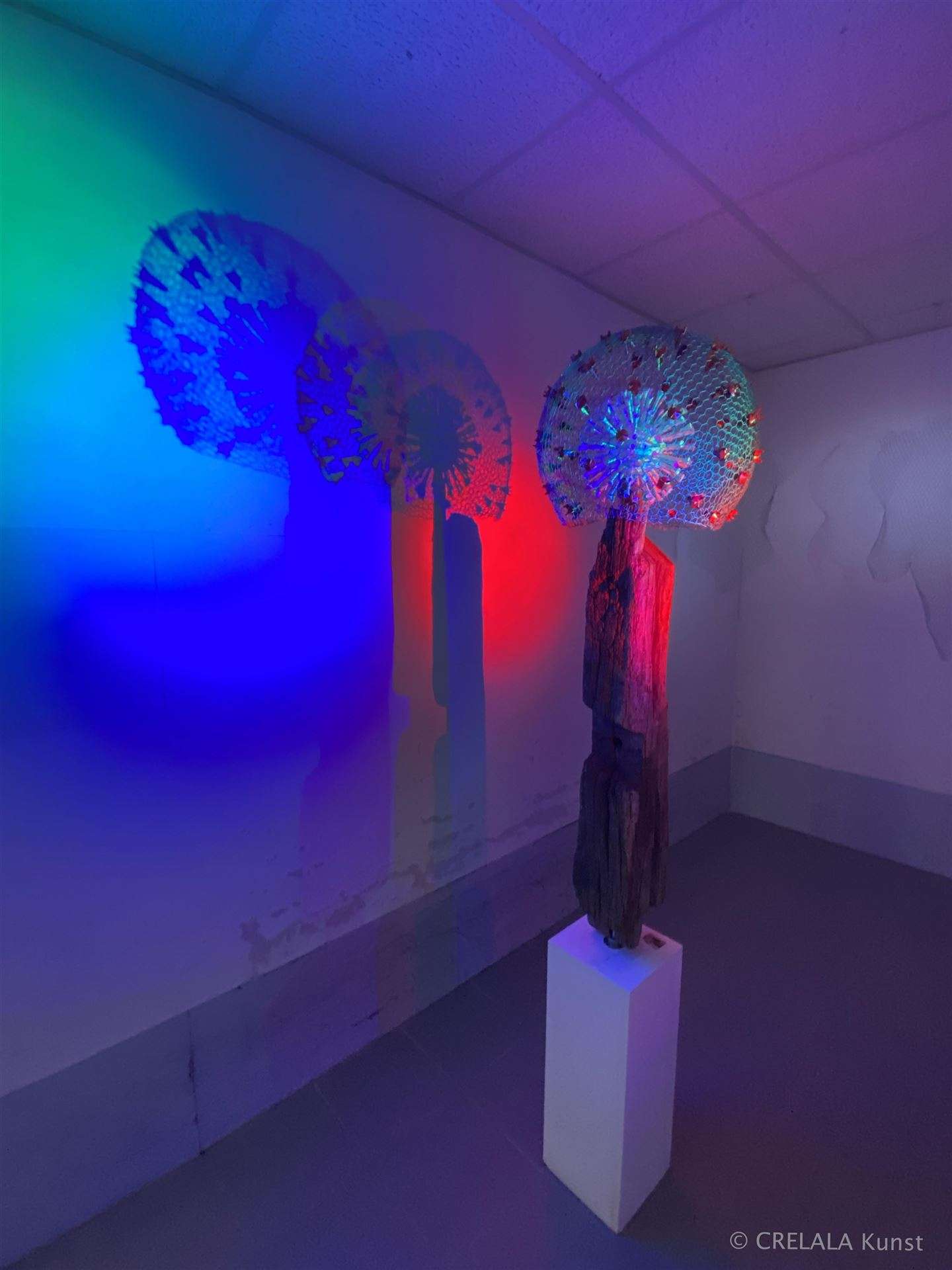 Netze, die Teilchen fangen, mal kugelig wie Zellen, die von Spikes attackiert werden, von Nägeln, mal als Körperfragmente, umhüllt von polygonalen, wabenartigen Luftpolstern, deren weibliche Form erst im Spiel von Licht und Schatten zum Kunstwerk wird. Lichtkünstlerische Kettenwelten, Gitterwelten, Körperbetonungen sind wie eine Offenbarung, wie man physikalische, chemische und biologische Parameter in Form bringen und nutzbar machen kann. Hannes Metz Begeisterung für einfache geometrische Formen und deren Simulation mit unterschiedlichsten Metarialien, wie Glas, Holz oder Metall, zeigt Spielereien, die inspirieren.