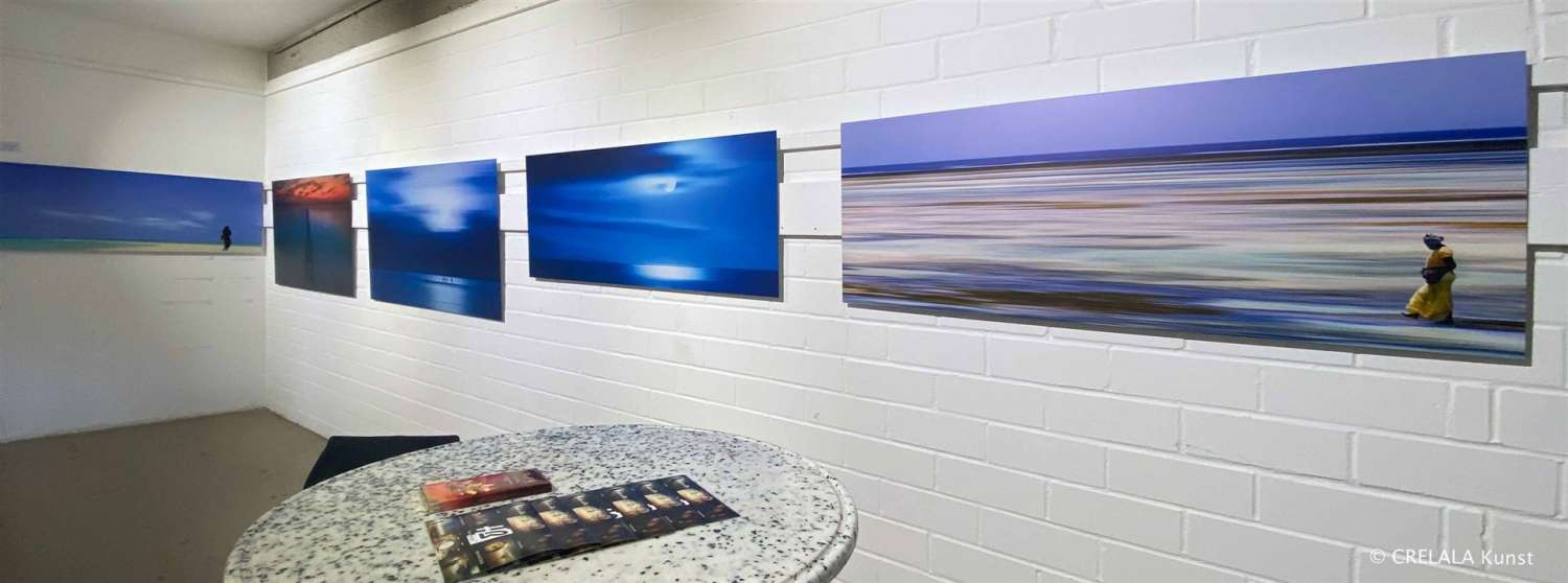 Auch Harry Bünger hat sich den Horizonten verschrieben. „Horizons“! Weite Himmel, beruhigende Atmosphäre, der Mensch ohne Bedeutung in den Weiten der Unendlichkeit. Und wie zur Bestätigung der Bedeutungslosigkeit von Raum und Zeit überlässt er auch eine Sammlung von Digitalcollagen, in denen er der Uhr als Symbol für die Bedeutung von Zeit viel Raum gibt. Arbeiten in einer Tönung, die an die zauberhafte Welt des Nathan Wright erinnern.