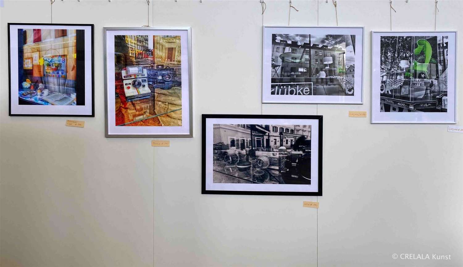 Polaroidkameras und andere Belichtungsapparate in der Auslage hinter spiegelndem Glas, in dem sich die Stadtansichten der Umgebung zeigen, sind die Arbeiten der Künstlerin Petra Schmitt, die sich vor allem dem Spiegeln von zweiten Ebenen in Glas und Fenstern widmet. Ihre Fotografien beleuchten nie nur eine Ebene, sondern immer auch eine zweite, oder dritte, die sich räumlich abtrennt von dem, worauf die Kamera eigentlich gerichtet ist.