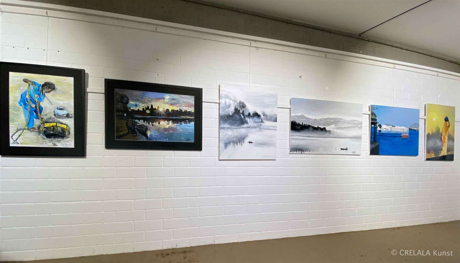 Flußlandschaften, Nebellandschaften, Seen und Berge, Horizonte,… mal nur Ton in Ton, mal Boote in schäumender Brandung oder ein Kind an einem Brunnen… was wäre die Menschheit ohne Wasser? Ohne das Lebenselexier des blauen Planeten? Uli Hildner arbeitet die Wertschätzung für Wasser aus, überlassen in unterschiedlichen Positionen, die berühren dürfen.